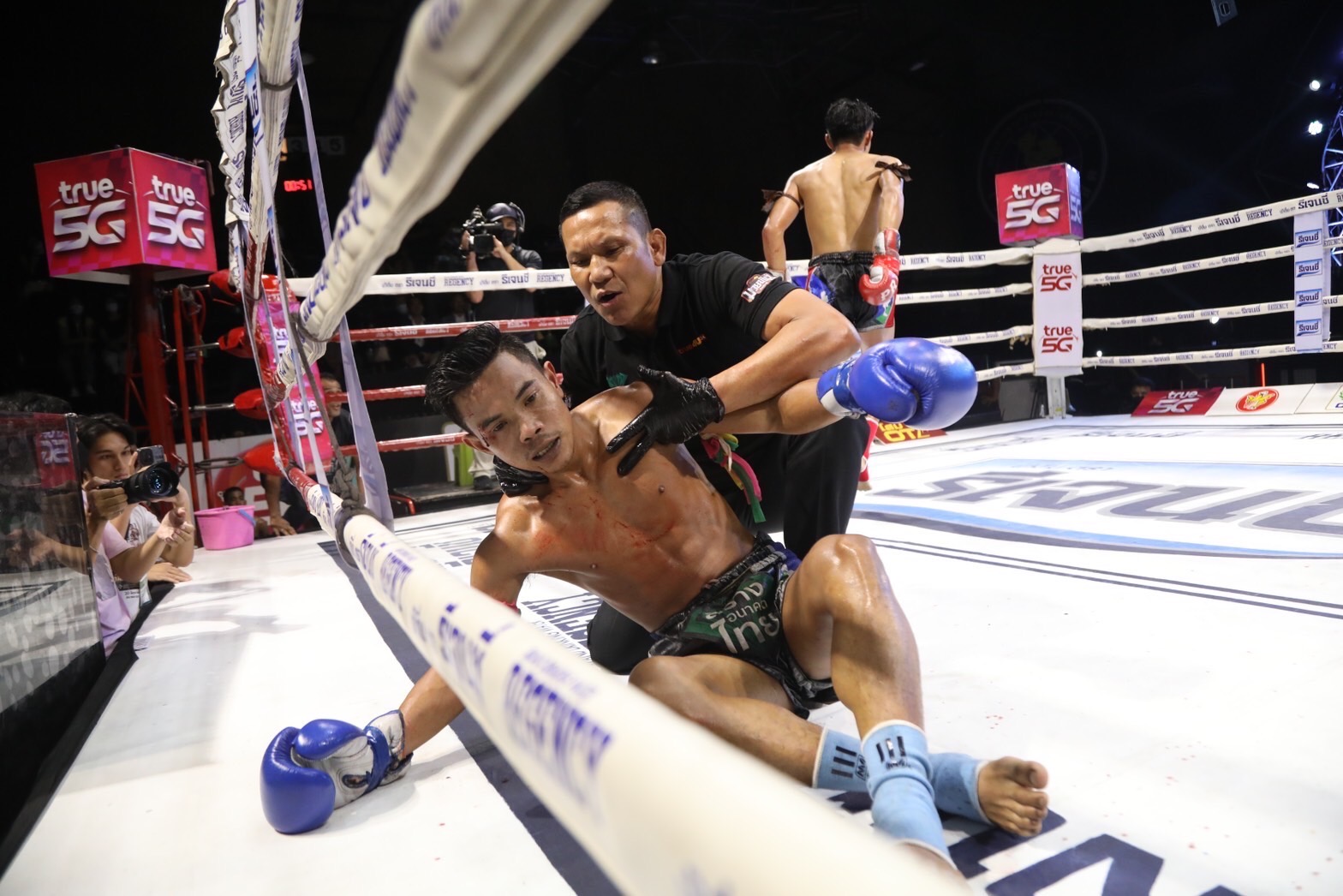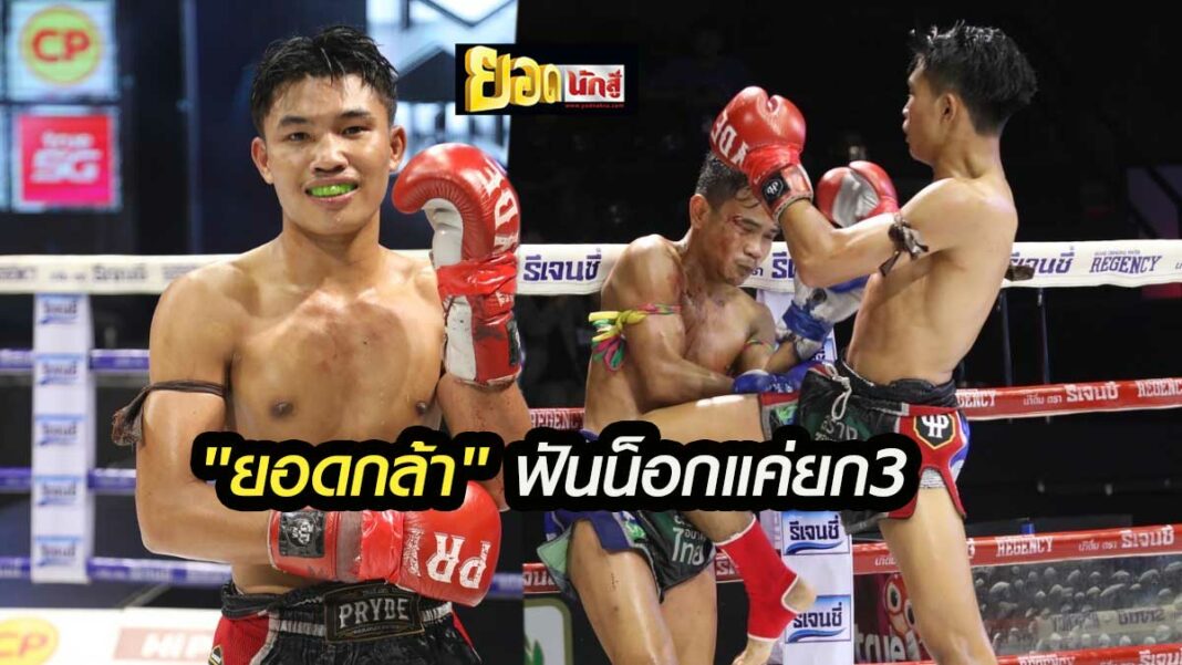 ยอดกล้า พ.วิเศษยิม อย่างดุเดินออกอาวุธใส่แก่นอุบล ภ.หลักบุญจนล้มไม่เป็นท่าก่อนจะฟันศอกจนทรุดลงไปกองกับพื้นเวที ยอดกล้าชนะน็อกอย่างสวยงาม ศึกมวยมันสนั่นเมือง วันอังคารที่ 22 พฤศจิกายน 2565 เวทีมวยนานาชาติรังสิต