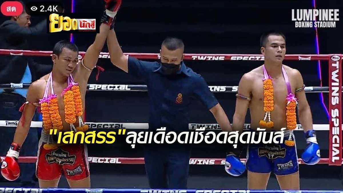 “คนไม่ยอมคน”เสกสรร อ.ขวัญเมือง เดินหน้าเชิงไม่สนชนเดียวลุยออกอาวุธใส่ ขุนหาญเล็ก เกียรติเจริญชัย ที่สูงใหญ่ดักโต้ตลอดแต่เสกสรรได้ลูกเดินขยันกว่าเป็นฝ่ายเอาชนะคะแนนไปสุดมันส์ ศึกมวยไทยลุมพินีพิทักษ์ธรรม อังคารที่ 6 ธ.ค.2565