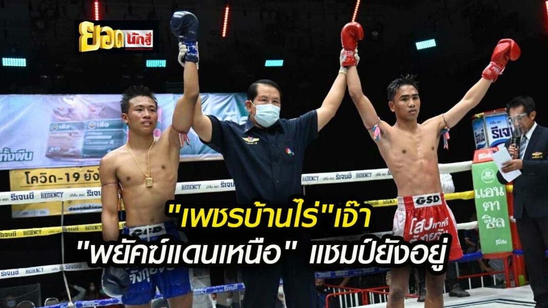 เพชรบ้านไร่ สิงห์มาวิน เดินลุยปล้ำตีเข่าแต่ก็ถูกพยัคฆ์แดนเหนือ เดชเพชรสีทอง ใช้ฝีมือตอบโต้พลิกเหลี่ยมจนเสียอาการ ครบยกกรรมการให้เสมอกันไป48-48 แชมป์ยังไม่เปลี่ยนเอวแต่กรรมการก็ถูกด่ายับเพราะมองว่าพยัคฆ์แดนเหนือน่าชนะมากกว่า