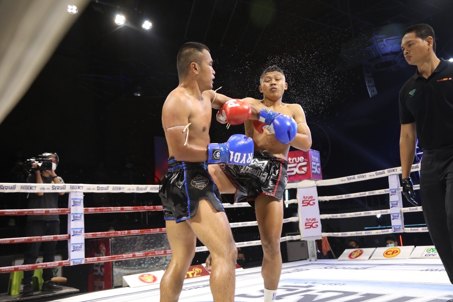 เชน เพชรนาคา ต้นๆสู้ฝีมือความเก๋าของ เกรียงไกร เพชรยินดีอคาดามี่ไม่ได้แต่ใช้ความหนุ่มสดเดินบดสาดแข้ง ต้นยกสุดท้ายเตะจนรุ่นพี่ยุบคาแข้ง เชนพลิกล็อกชนะคัแนน ศึกเพชรยินดี วันอังคาร ที่ 10 มกราคม 2566 เวทีมวยรังสิต