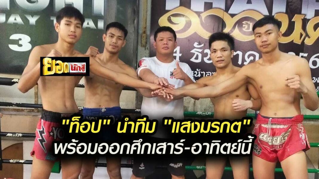 ท็อป แสงมรกต ประสานมือร่วมใจกับ 4 นักชกในสังกัดพร้อมออกศึก(จากซ้าย) เพชรทวีศักดิ์ พบ วีไอพี นายกวิทย์ทุ่งสง และ เพชรพญาไท พบ น้องบิว ศิษย์ป๋าโอ ศึก9 มวยดีวิถีไทย เสาร์ที่ 18 ก.พ.ส่วน บินลาดิน บู๊ ยางดำ สท.เหี่ยวบางแสน และ ศุภชัยเล็ก พบ ชาญยุทธ ศักดิ์รุ่งเรือง ศึกมวยดีวิถีไทย อาทิตย์ที่ 19 ก.พ.