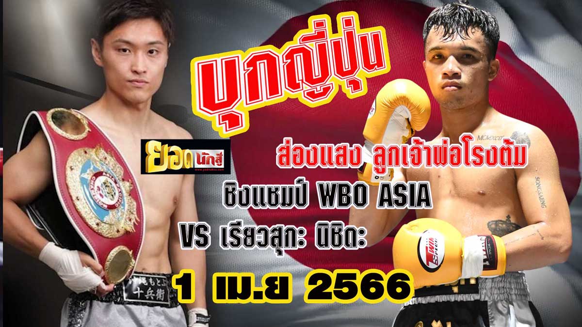 “ส่องแสง ลูกเจ้าพ่อโรงต้ม” ขึ้นขิงแชมป์เอเชียรุ่นแบนตั้มเวทขององค์กรมวยโลก (WBO) กับ เรียวสุเกะ นิชิดะ แชมป์ชาวญี่ปุ่น โดยการชกของ ส่องแสง กับ นิชิดะ จะมีขึ้นในวันที่ 1 เมษายน 2566 ที่สังเวียนเอดีออนอารีน่า โอซาก้า ประเทศญี่ปุ่น