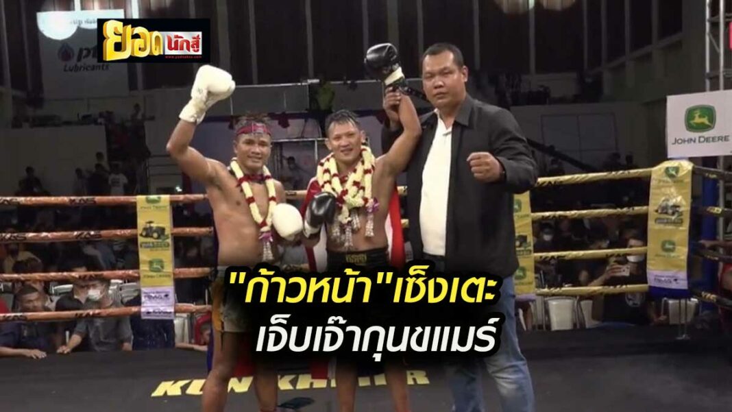 ก้าวหน้า พี.เค.แสนชัย เตะซ้ายตัดล่างจนเมียน ซก นักชกกัมพูชาหงายท้องยกละหลายครั้ง เจ้าถิ่นอาศัยแรงเชียร์ฮึดสู้ได้เฮแต่เสียหลักเหลี่ยม เตะผิดเตะถูกคาเชือก ปลายยกต่างมั่นใจ ครบยกกรรมการให้เสมอกันไปชนิดก้าวหน้าถึงกับงง!? เสมอได้ไง?