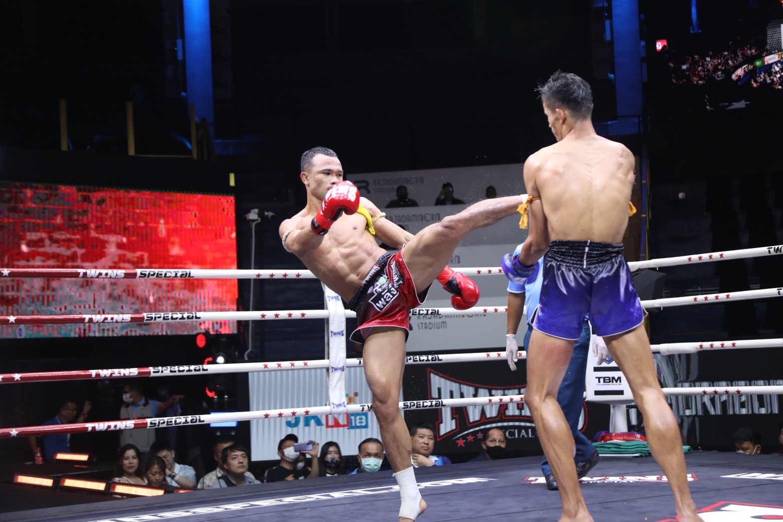 ปฏักเอก ซินบิมวยไทย รูปร่างเสียเปรียบแต่ได้เก๋า เล่นฝีมือล็อกตีเข่าเอาชนะคะแนน เดือน จิตรเมืองนนท์ ไปขาดลอยศึกมวยไทยพลังใหม่วันพุธที่ 1 มีนาคม 2566