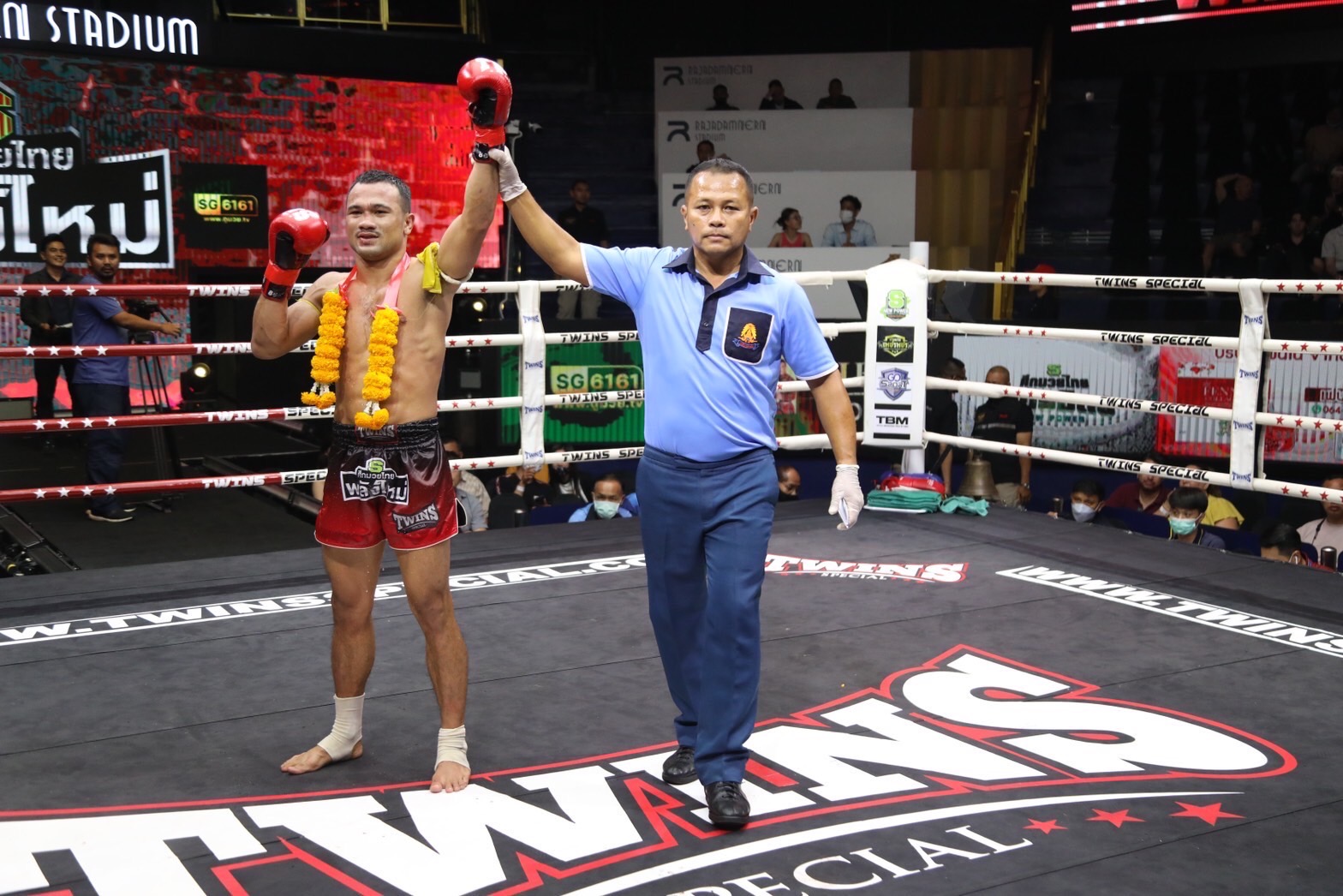 ปฏักเอก ซินบิมวยไทย รูปร่างเสียเปรียบแต่ได้เก๋า เล่นฝีมือล็อกตีเข่าเอาชนะคะแนน เดือน จิตรเมืองนนท์ ไปขาดลอยศึกมวยไทยพลังใหม่วันพุธที่ 1 มีนาคม 2566