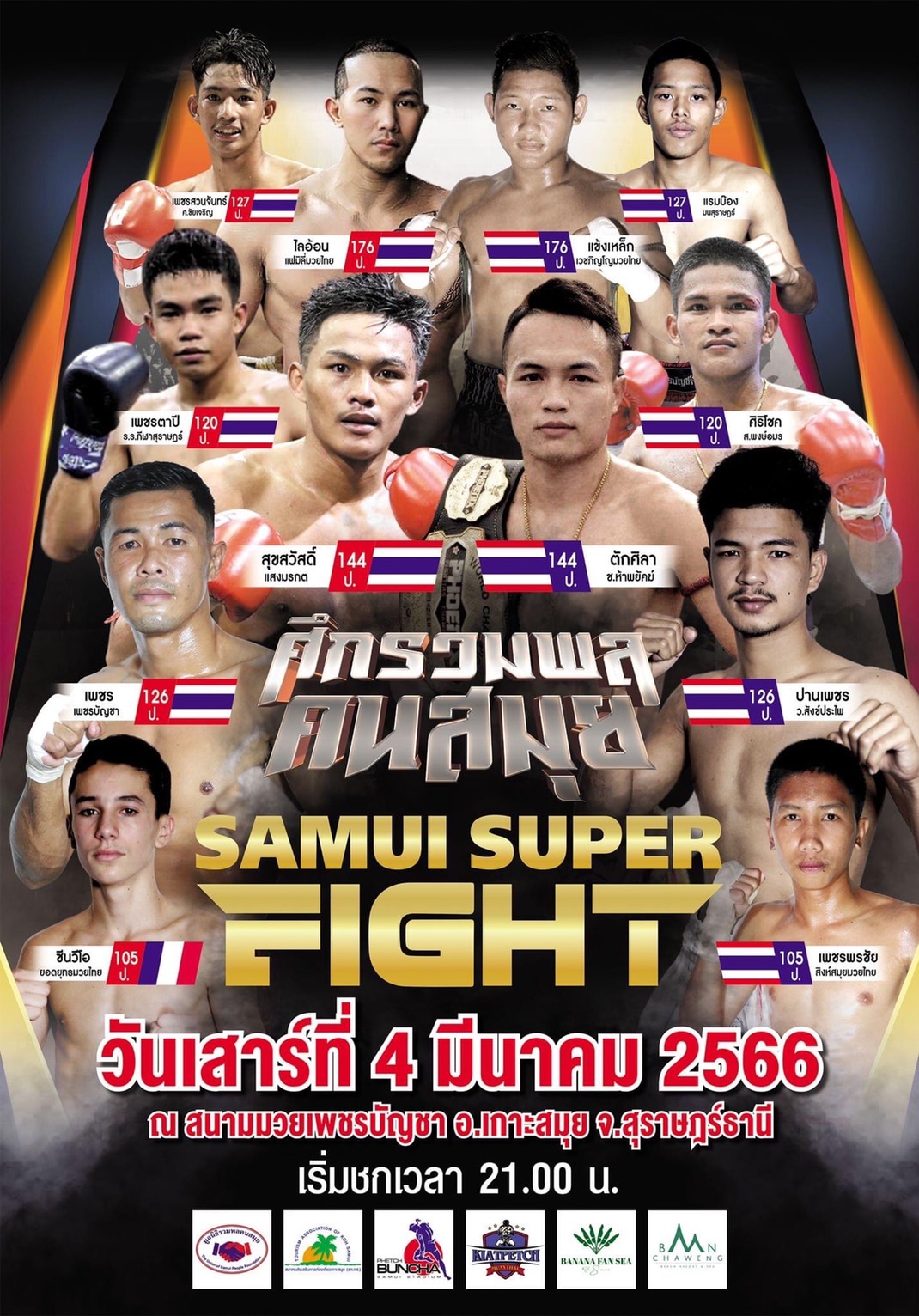 ศึกรวมพลคนสมุย สมุยไฟท์เดินหน้ายังจัดต่อโดยมีการไลฟ์สดทางเพจศึกรวมพลคนสมุย อัดคู่มวยแน่น วันเสาร์ที่ 4 มี.ค.นี้คู่เอกสุขสวัสดิ์ แสงมรกต ซด ตักศิลา ช.ห้าพยัคฆ์,คู่รอง เพชรตาปี รร.กีฬาสุราษฎร์ พบ ศิริโชค ส.พงษ์อมร