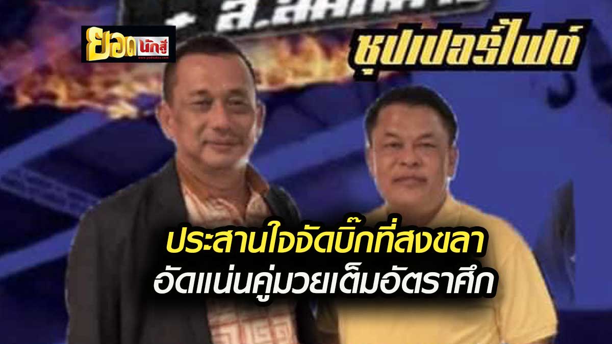 สุพิศ พิทักษ์ธรรม ประสานใจปมต.สมหมาย สกุลเมตตา จัดอลังการ ศึกพิทักษ์ธรรม&พลังใหม่ เสาร์ที่ 13 พฤษภาคมที่บริเวณลานจอดรถโรงแรมลากูน่า จ.สงขลาอัดแน่นเต็มอัตราศึกกุหลาบดำกับ-ก้องไกล, ยอดเหล็กเพชร-เฟอรารี่, ตะเภาแก้ว-เพชรธงชัย,เพชรสมหมายแก้มือฉลามดำ, โอท็อปทาบเสกสรร,ปราบศึก-พฤหัสน้อย,เก้าปฏัก-วัชรพล