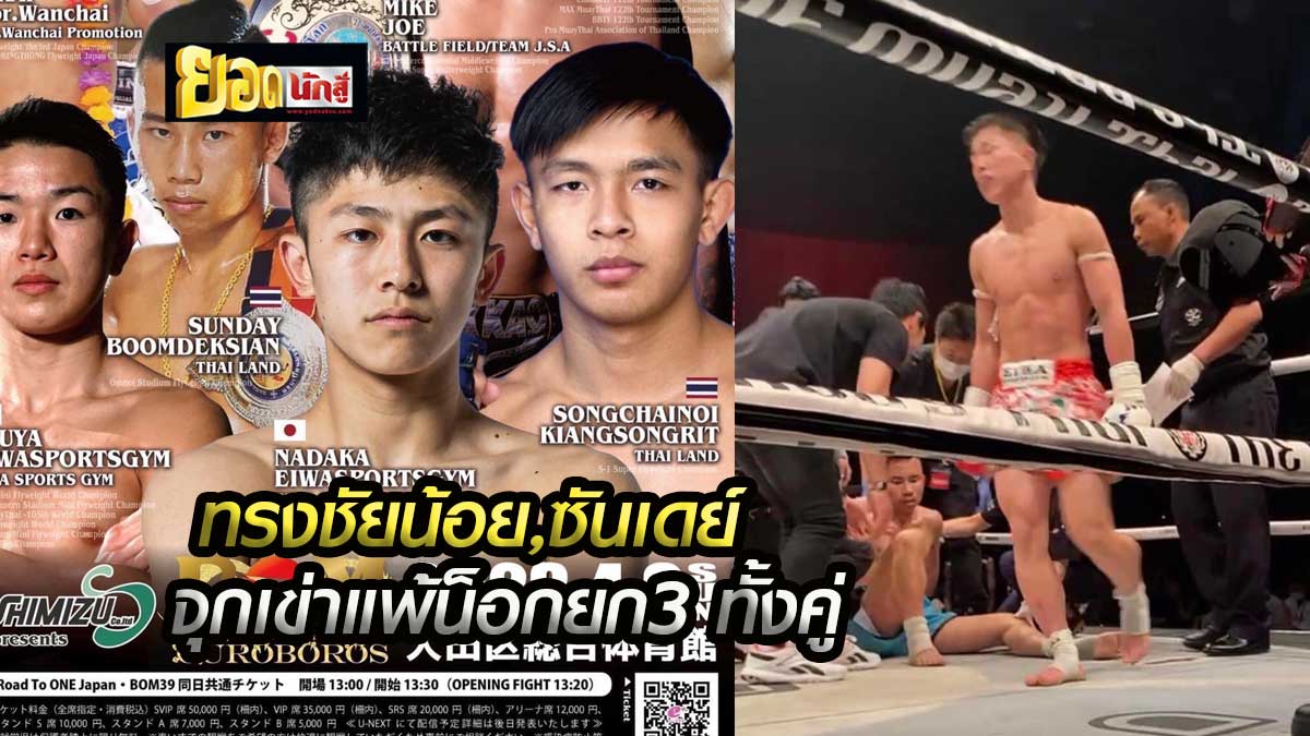 ซันเดย์ บูมเด็กเซียน โดนเข่าเข้าท้องพ่ายน็อก เรียวยะ เอวะสปอร์ตยิม ยก3 ในการชกกติกา5 ยก