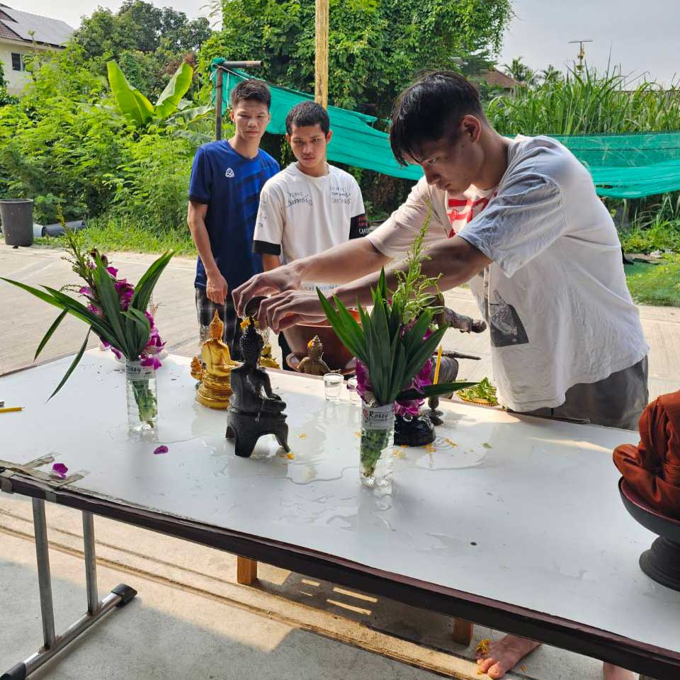 การสรงน้ำพระเป็นการเสริมสิริมงคลต้อนรับเทศกาลปีใหม่ที่ปฏิบัติสืบเนื่องกันมา ทีมเกียรติกรีรินทร์ โปรโมชั่น โดย ดร.เอกรัฐ ไชยโชติช่วง, โค้ชแซม กามนิตย์ นารีรักษ์, โค้ชฟ้าใส ศิรชัช ศิระนามชัย, โค้ชพนม โพธิ์แย้ม พร้อมกับ นักชกขวัญใจชาวไทย ขอร่วมสืบสานประเพณีอันดีงาม นำทีมโดย “หมัดเมืองหมอแคน” แก่นนคร จีพีพีเรือใบไข่มุก , “เดอะไลตติ้ง” ส่องแสง ลูกเจ้าพ่อโรงต้ม, “หมัดสั่งฟ้า” เผด็จศึก จีพีพีเรือใบไข่มุก, “จิ้งเหลนดง” ฟ้าคำราม จีพีพีเรือใบไข่มุก, นำโชค บุญลานนามวยไทยอ และ ทรอย โอเมเลย์ นักชกดาวรุ่งชาวออสเตรเลีย ร่วมกัน “สรงน้ำพระ” พระพุทธรูป และ สิ่งศักดิ์สิทธิ์ที่เคารพบูชาของ ค่ายมวยเกียรติกรีรินทร์