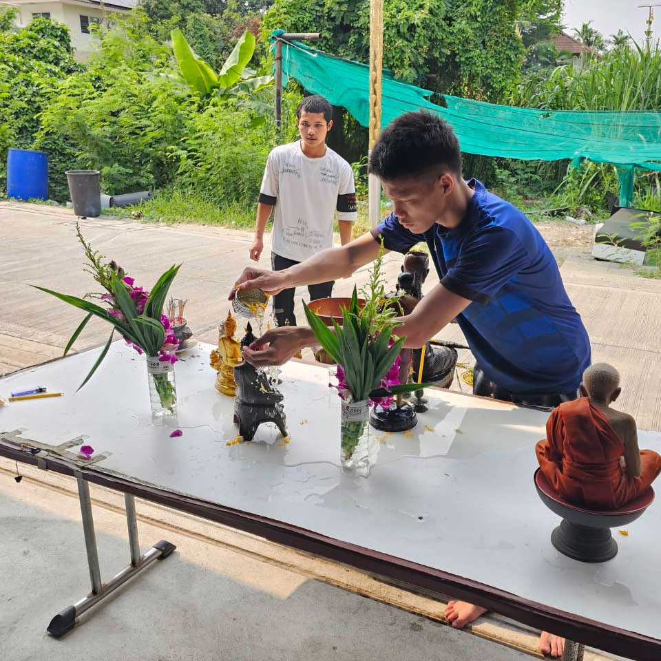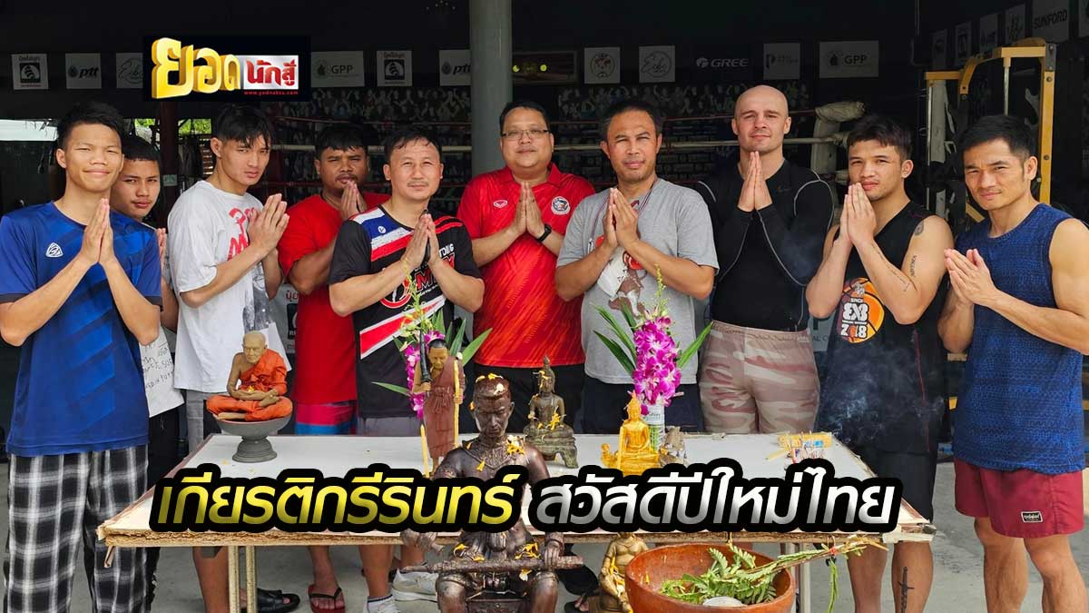 การสรงน้ำพระเป็นการเสริมสิริมงคลต้อนรับเทศกาลปีใหม่ที่ปฏิบัติสืบเนื่องกันมา ทีมเกียรติกรีรินทร์ โปรโมชั่น โดย ดร.เอกรัฐ ไชยโชติช่วง, โค้ชแซม กามนิตย์ นารีรักษ์, โค้ชฟ้าใส ศิรชัช ศิระนามชัย, โค้ชพนม โพธิ์แย้ม พร้อมกับ นักชกขวัญใจชาวไทย ขอร่วมสืบสานประเพณีอันดีงาม นำทีมโดย “หมัดเมืองหมอแคน” แก่นนคร จีพีพีเรือใบไข่มุก , “เดอะไลตติ้ง” ส่องแสง ลูกเจ้าพ่อโรงต้ม, “หมัดสั่งฟ้า” เผด็จศึก จีพีพีเรือใบไข่มุก, “จิ้งเหลนดง” ฟ้าคำราม จีพีพีเรือใบไข่มุก, นำโชค บุญลานนามวยไทยอ และ ทรอย โอเมเลย์ นักชกดาวรุ่งชาวออสเตรเลีย ร่วมกัน “สรงน้ำพระ” พระพุทธรูป และ สิ่งศักดิ์สิทธิ์ที่เคารพบูชาของ ค่ายมวยเกียรติกรีรินทร์