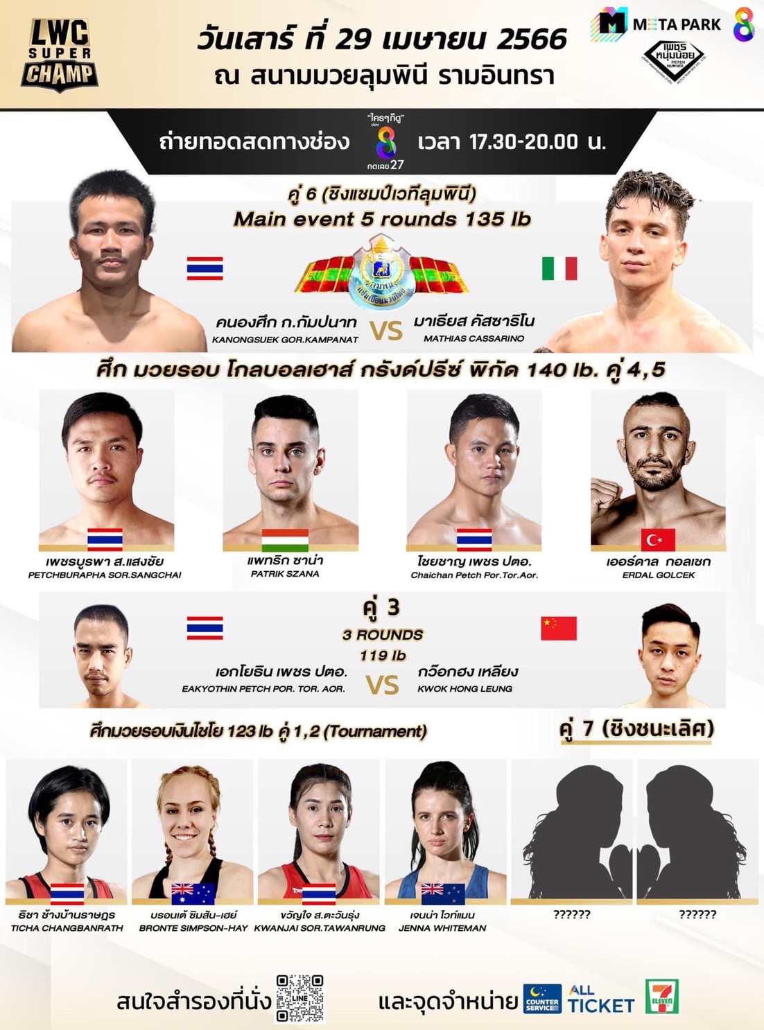 ศึก LWC ซูเปอร์แชมป์ เสาร์ที่ 29 เม.ย.เวทีลุมพินี หนุ่มน้อย พลิกฟื้นแชมป์ลุมพินี