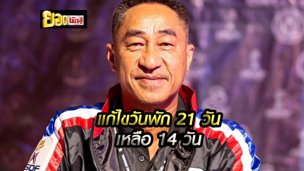 แก้ไขวันพัก 21 วันเหลือ 14 วัน ข่าวมวย 29 เมษายน 2023 Updated: 30 เมษายน 2023 By Por Piroon แบ่งปัน FacebookLINE นายพลัฎฐ์ สุวรรณาเมธากร ผอ.กีฬามวย เผยกำลังอยู่ในขั้นตอนของ คณะอนุกรรมการฝ่ายแพทย์ พิจารณาแก้ไขกฎระเบียบ ว่าด้วย “วันพักนักมวย” จากปัจจุบันถ้าชกครบยกพัก 21 วันจะเหลือพัก 14 วัน คิดอย่างไรเห็นด้วยหรือไม่ วันพักนักมวยจาก 21 วันเหลือ 14 วัน ทิ้งคำตอบไว้ ยกเลิกการตอบ ความคิดเห็น กรุณาใส่ความคิดเห็นของคุณ! ชื่อ* กรุณาใส่ชื่อของคุณที่นี่ อีเมล์* คุณป้อนที่อยู่อีเมลไม่ถูกต้อง! กรุณาใส่ที่อยู่อีเมลของคุณที่นี่ เว็บไซต์ บันทึกชื่ออีเมลและเว็บไซต์ของฉันในเบราว์เซอร์นี้ในครั้งต่อไปที่ฉันแสดงความคิดเห็น Δ Tagsสำนักงานคณะกรรมการกีฬามวย Por PiroonThe Veteran Sport Writer แบ่งปัน FacebookLINE ข่าวล่าสุด ข่าวมวย สองน้องยักษ์ทำศึกซูเปอร์ไฟต์ kee yodmuaylok - 20 เมษายน 2026 - ปุ๋ยไข่มุกตราเรือใบไข่มุก - ข่าวดัง “เพชรโกศล” ฟอร์มเฉียบขาดน็อกเม็กซิกัน kee yodmuaylok - 17 เมษายน 2026 ข่าวดัง “คอเนอร์” โชว์เหนือพิชิต “โปรเกรียส” kee yodmuaylok - 15 เมษายน 2026 ข่าวมวย “ไอตาอูมา” ยักษ์ดุตัวใหม่คว่ำคู่ชกยก 5 kee yodmuaylok - 14 เมษายน 2026 - SUNFORD - - MUANGTHAIINSURANCE-
