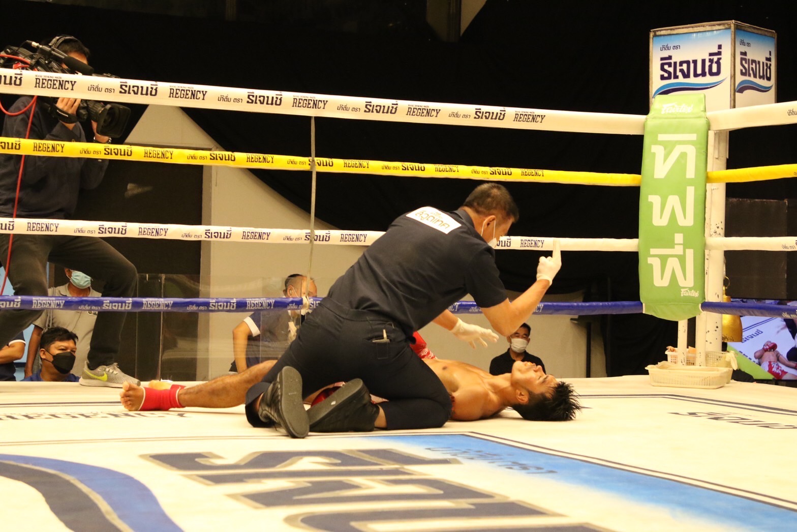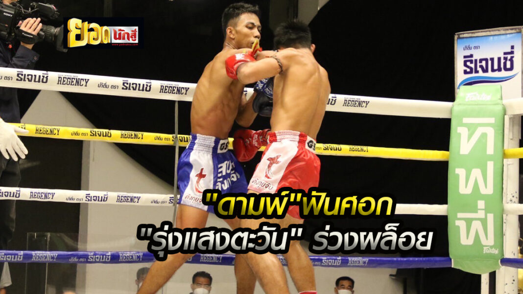 ดามพ์ พรัญชัย หรือเสือดาม ส.คงมี ดักฟันศอกขวาเข้าเต็มกรามชนะน็อก รุ่งแสงตะวัน ส.พาราษฎร์ ในยกที่ 3 ศึกมวยไทย 7 สี