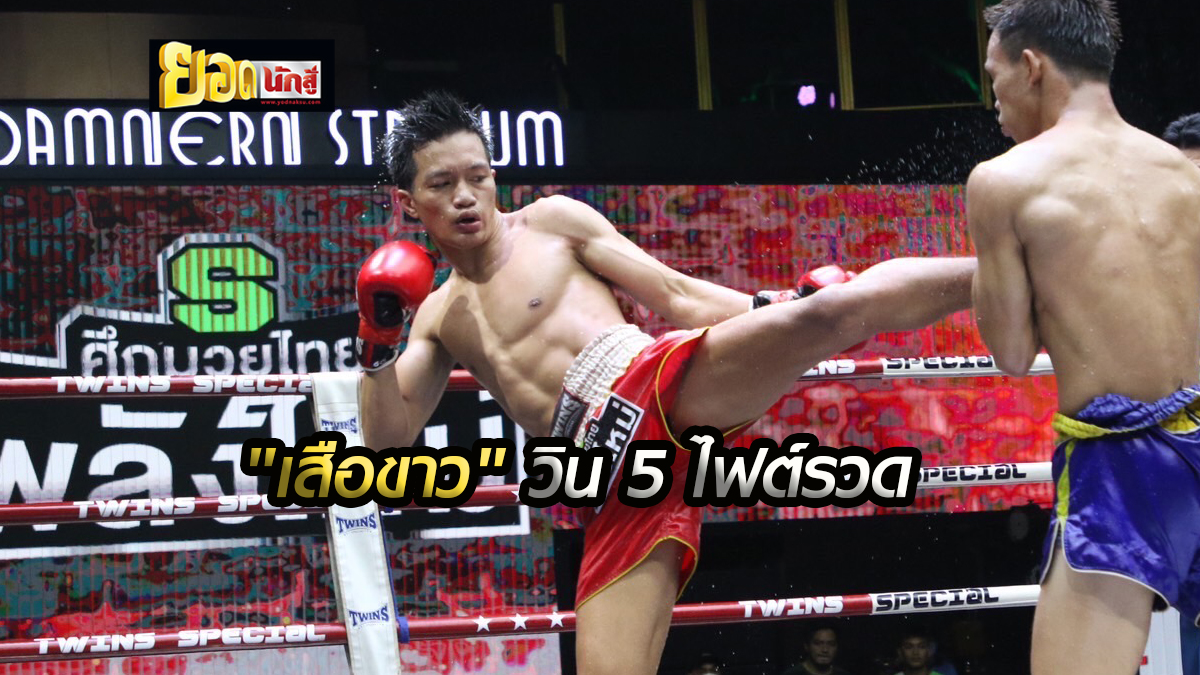 เสือขาว วินอุบล นักชกฟอร์มสด5 ไฟท์หลังชนะรวดรูปร่างสูงใหญ่สาดแข้งปล้ำตีเข่าสู้กับ โรเบิร์ต ส.มงคลการช่าง นักมวยรุ่นพี่ที่เดินต่อยหมัดลุยเดือดเอียงไปหลายครั้งแต่ก็ทนอยู่ได้ ครบยกเสือขาวเอาชนะคะแนนไปขาดลอย ศึกมวยไทยพลังใหม่ วันพุธที่ 17 พฤษภาคม 2566