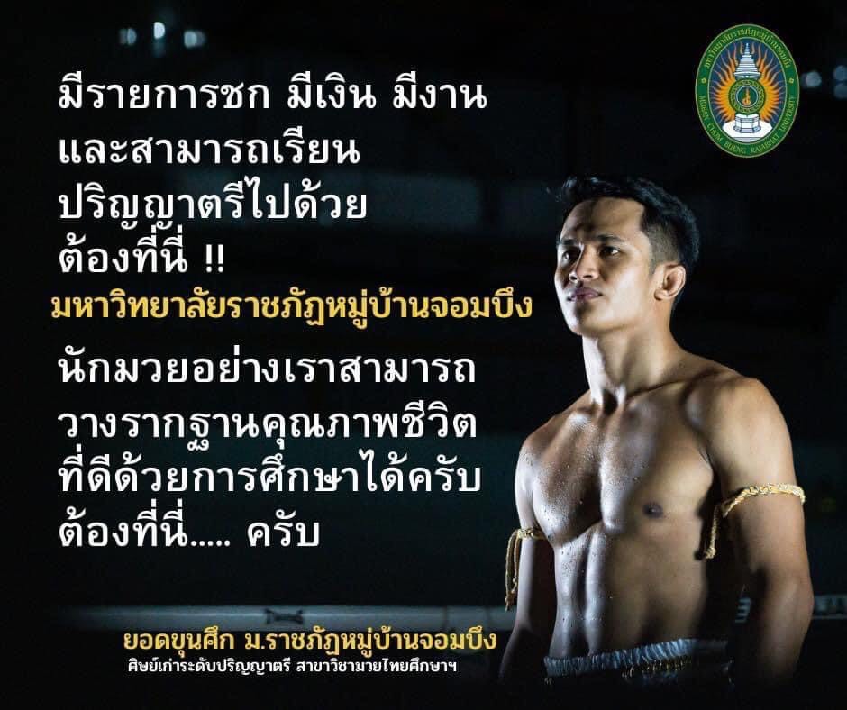 มหาวิทยาลัยราชภัฎหมู่บ้านจอมบึง โครงการดีๆ กับการเปิดโอกาสให้บรรดานักมวยที่ฟิตซ้อมอยู่ในค่ายได้ศึกษาต่อจนสำเร็จปริญญาตรีโดยยังฝึกซ้อมได้ที่ค่ายได้เหมือนเดิม เพื่ออนาคตกับการศึกษาในรูปแบบใหม่ในระบบออนไลน์