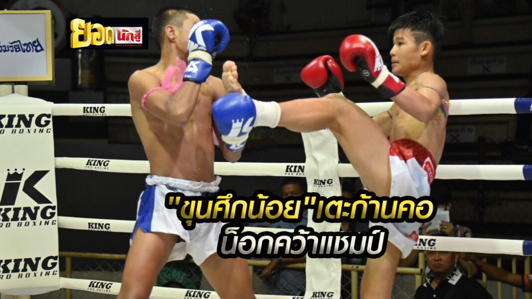 ขุนศึกน้อย บูมเด็กเซียน ฝีมือเหลี่ยมเชิงจัดจ้านทำเอา เพชรก้องฟ้า ทีบีเอ็ม.ยิม เข้าไม่ติด ก่อนที่ปลายยกสุดท้ายเตะซ้ายก้านคอชนะน็อกอย่างสวยงาม คว้าแชมป์ 118 อ้อมน้อยไปครอง ศึกจ้าวมวยไทย วันเสาร์ที่ 20 พฤษภาคม 2566