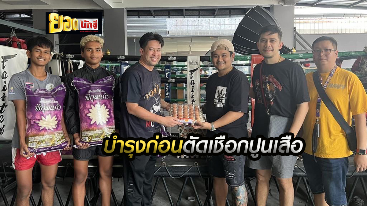 “เสี่ยอุ้ม และ เสี่ยเบียร์ ลัคกี้บันเทิง” ลูกพี่ใหญ่แห่งค่ายลัคกี้บันเทิง เดินทางมามอบของบำรุงให้กับ เวน่อม ลัคกี้บันเทิง – ยอดบัวงาม ลัคกี้บันเทิง และนักมวยในค่ายเกียรติเพชร ก่อนที่รายแรกจะมีคิวชกตัดเชือกมวยรอบปูนเสือครั้งที่ 22 กับ ก้องชัยวัฒน์ เกียรติชัยวัฒน์ คู่ 2 มวยไทย 7 สี อาทิตย์นี้ โดยงานนี้มี โปรเดียร์ เกียรติเพชร เป็นตัวแทนรับมอบของบำรุงไข่ไก่และข้าวสาร