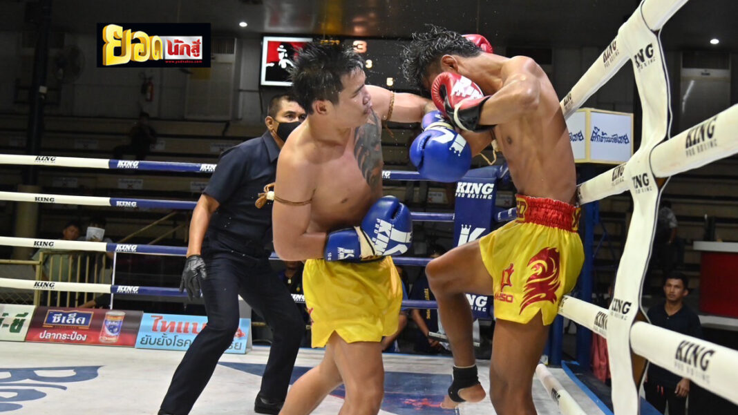 ขาวผ่อง ศักดิ์ภิญโญ สูงยาวใหญ่นอกแข้งในเข่าแหลมแทงเจ็บชนะคะแนน กล้ารบ พี.เค.แสนชัยมวยไทยยิม คู่เอกศึกจ้าวมวยไทย เสาร์ที่ 17 มิ.ย.66 เวทีอ้อมน้อย