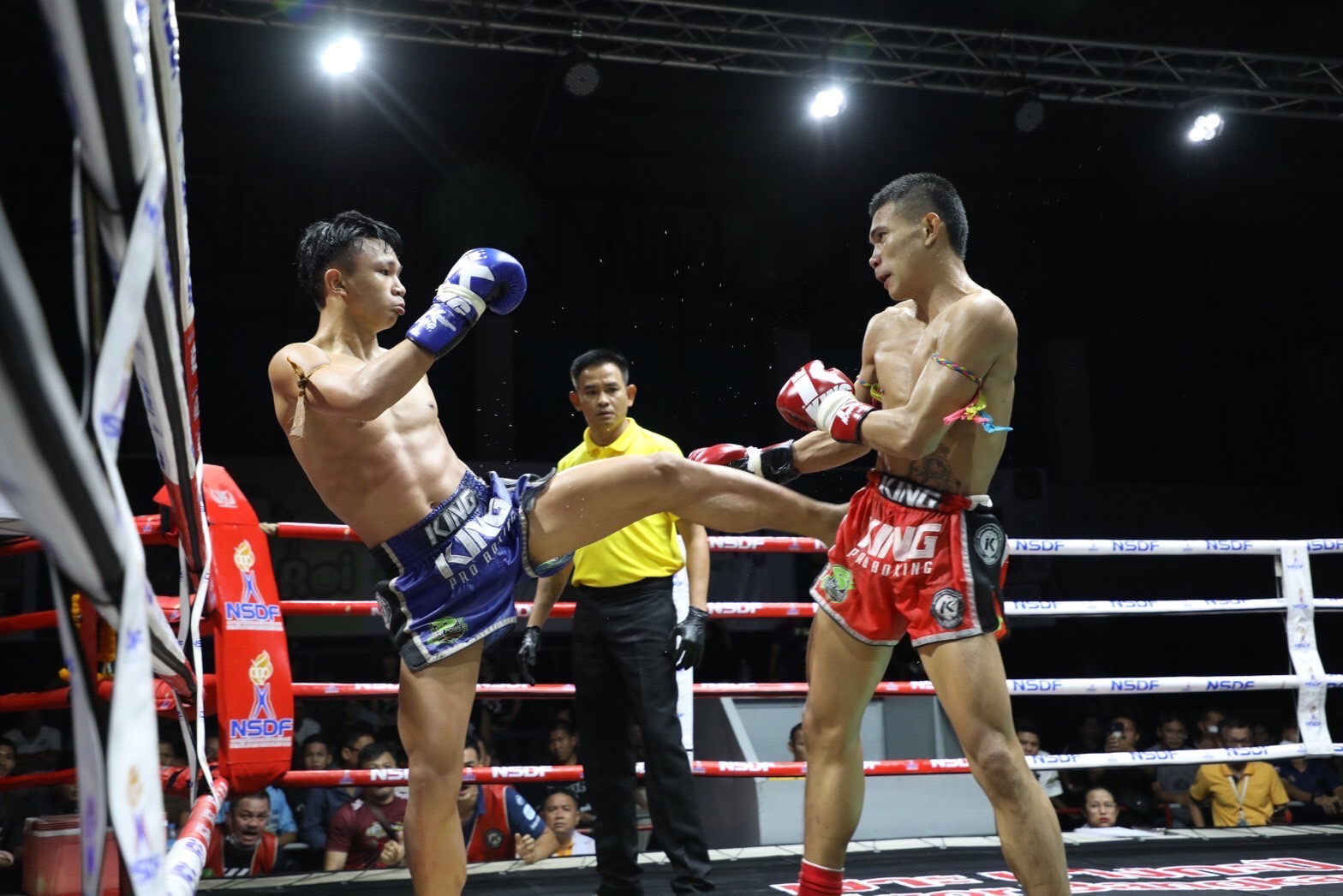 ฤทธิเดช ช.วิมลศิลป์ สาดแข้งซ้ายสกัดการบุกของ ยอดศิลา ช.5 พยัคฆ์ 3 ยกเบียดก่อนที่ยก 4 ฤทธิเดชเผดียงแข้งรวดเร็วกว่า ครบยกชนะคะแนนขาดลอย ศึกมวยไทยพันธมิตร วันจันทร์ที่ 7 สิงหาคม 2566 เวทีมวยกองทัพอากาศ ธูปะเตมีย์