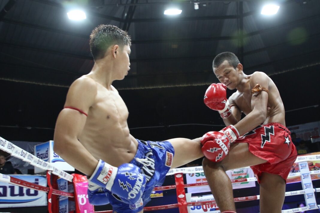 น้องบิว จิตรเมืองนนท์ นักชกดาวรุ่งใช้จังหวะฝีมือออกซ้ายเท้าหน้า หาจังหวะสาดแข้งเน้น ๆ เอาชนะคะแนน ทรงชนะ ต.บรู๊ซลี แก้มือสำเร็จ ศึก ๙ มวยดีวิถีไทย