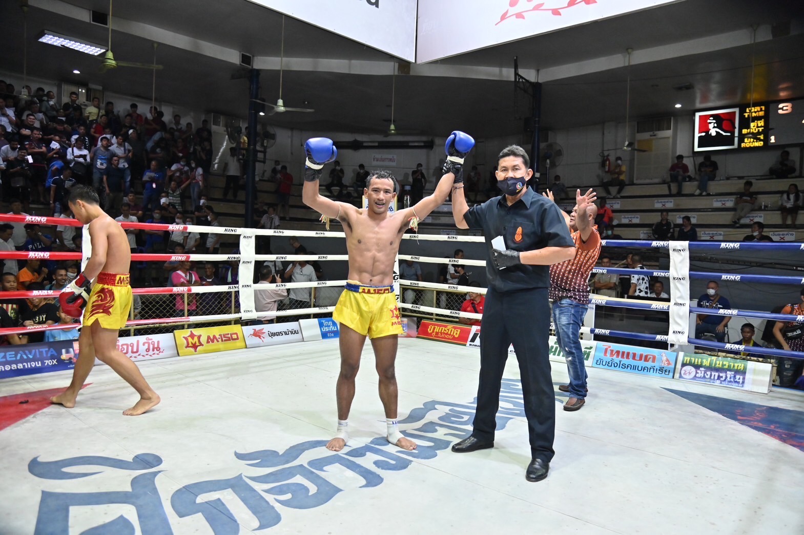 สมานชัย ที.บี.เอ็ม.ยิม รุ่นพี่กระดูกดีต้นๆเป็นรอง สตางค์ทอง ช.ห้าพยัคฆ์ ก่อนมาเล่นจังหวะออกแข้งเน้น ๆพลิกชนะคะแนน 49-48 ทั้งสามเสียง คู่เอกศึกจ้าวมวยไทย