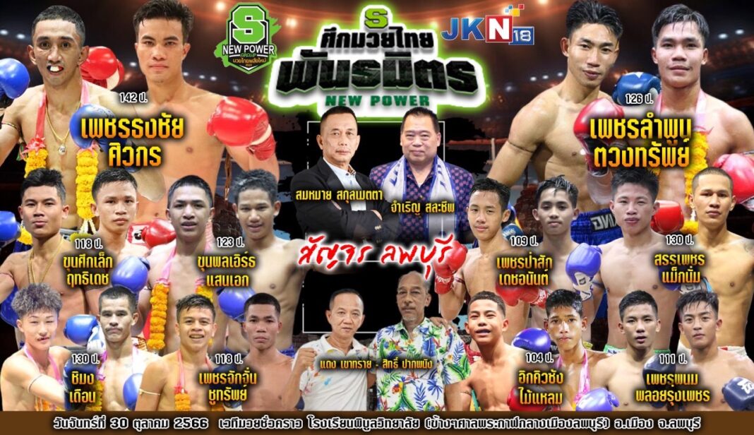 เลื่อนการแข่งขันและถ่ายทอดสดเป็น วันจันทร์ ที่ 30 ตุลาคม 2566 นี้ ที่เวทีมวยชั่วคราว ร.ร.พิบูลย์วิทยาลัย (ข้างศาลพระกาฬลพบุรี)