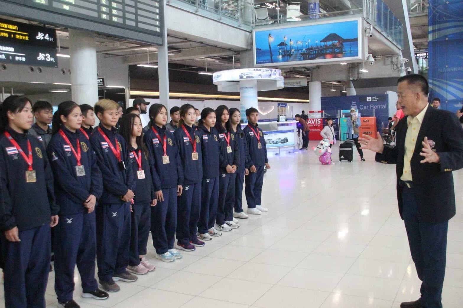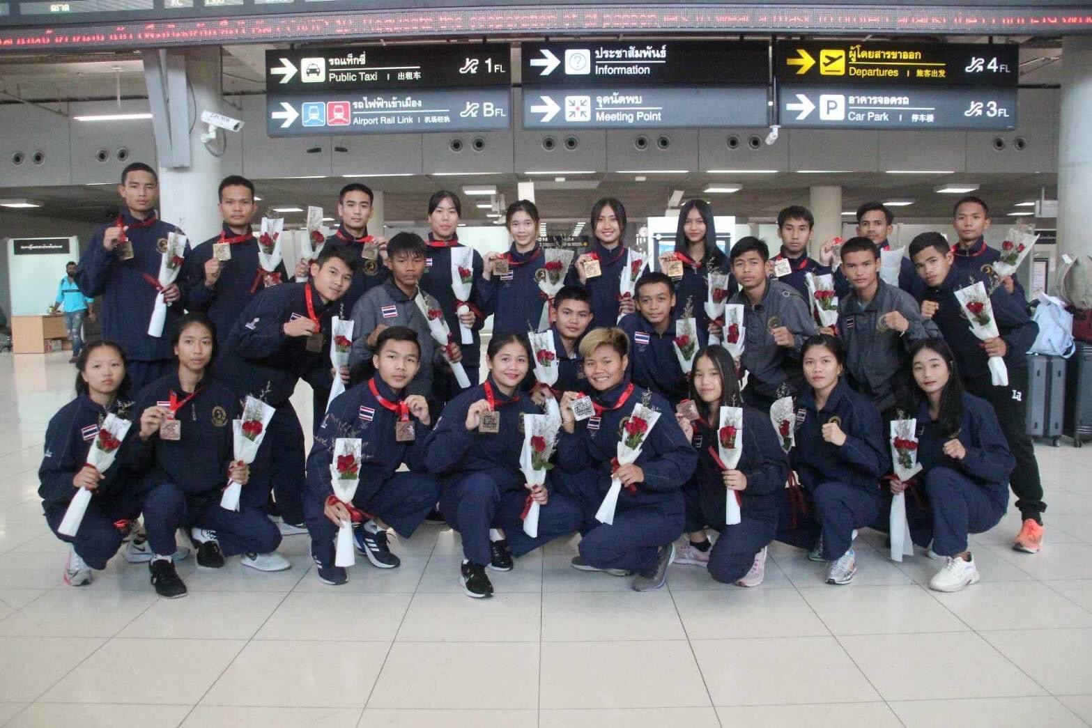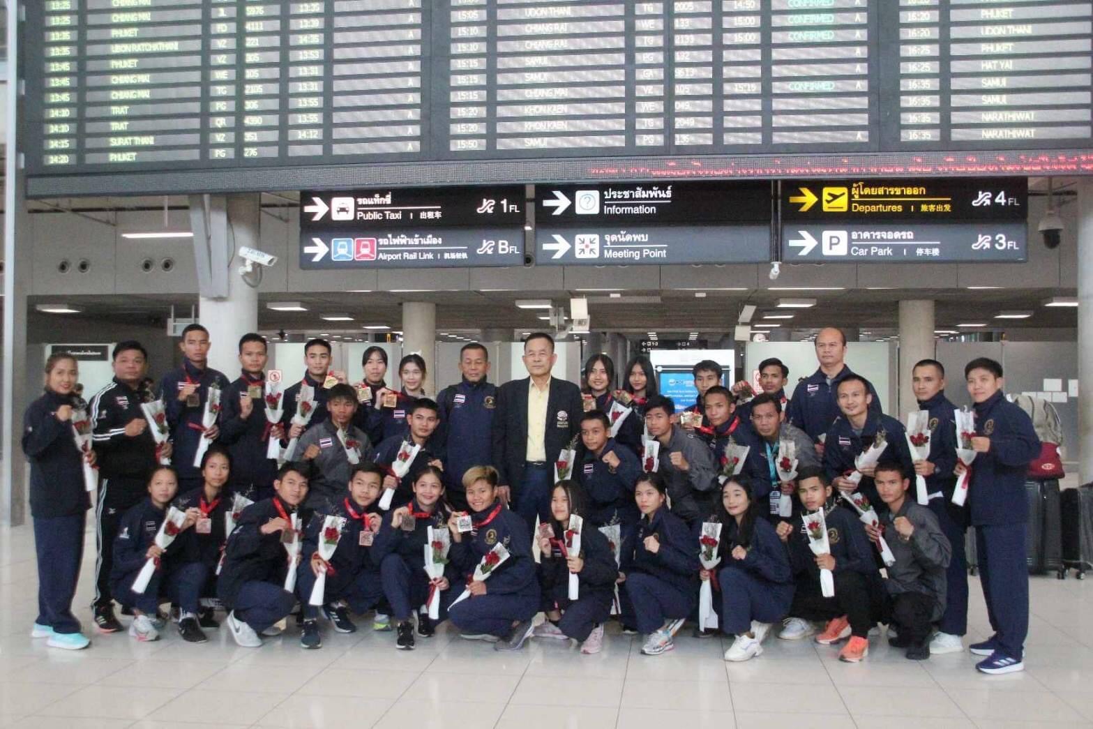 พล.อ.อ.มังกร เสมารัตน์ อุปนายกสมาคมกีฬามวยไทยสมัครเล่นแห่งประเทศไทย เป็นตัวแทนมาต้อนรับนักกีฬาและสต๊าฟโค้ช โดยได้กล่าวแสดงความยินดีกับนักกีฬาที่ประสบควงามสำเร็จ และให้กำลังใจนักกีฬาที่พลาดเหรียญรางวัลให้ขยันฝึกซ้อมเพื่อเป็นตัวแทนทีมชาติมาแก้ตัวใหม่ในโอกาสหน้า