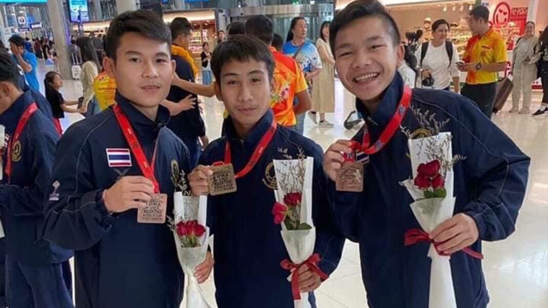“แฝดน้องกระนวน” ขุนศึกน้อย บูมเด็กเซียน นักชกมวยไทยสมัครเล่นทีมชาติไทยคว้าเหรียญทองแดงในการแข่งขัน มวยไทยเยาวชนโลก ที่ประเทศตุรกี รายการ IFMA Youth World Muaythai Championship 2023