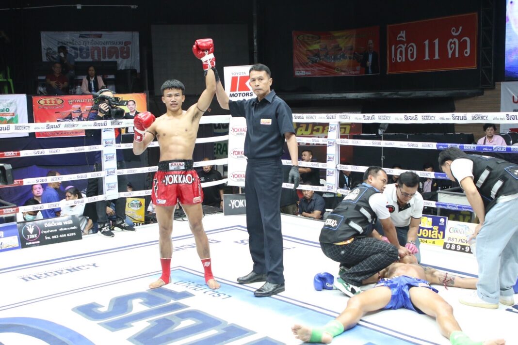 เคยเสมอกันมาแบบดุเดือดที่ไชยาแต่ไฟต์นี้ คนองศึก ก.กัมปนาท ได้ศอกเด็ดฟันเอา ซุปเปอร์เล็ก จิตรเมืองนนท์ ร่วงหงายท้องในยกที่2 ศึก ๙ มวยดีวิถีไทย วันเสาร์ที่ 28 ตุลาคม 2566 เวทีมวยจิตรเมืองนนท์ หยกขาว บ็อกซิ่ง สเตเดี้ยม