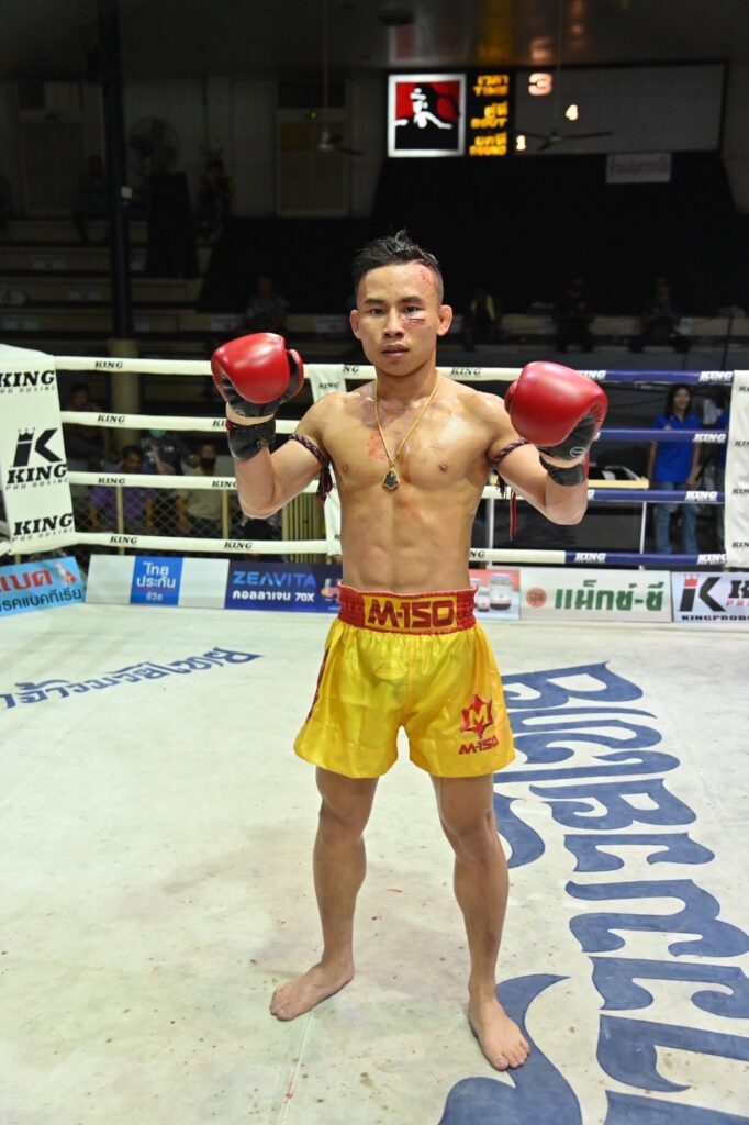 ซันเดย์ บูมเด็กเซียน โดนศอกแตก3 แผล ตกเป็นรองแต่มีลูกฮึดเดินลุยสู้อุตลุด จนถึงยก 4 เข้าไปปล้ำตีเข่า กระทุ้งตีๆๆ จนเพชรเจ้าพระยา (ศิษย์กำนันเหน่ง) สจ.เปีียกอุทัย ทนไม่ไหวทรุดลงไปกอง ซันเดย์ชนะน็อกพลิกล็อก ศึกจ้าวมวยไทย วันเสาร์ที่ 9 ธันวาคม 2566 เวทีมวยสยาม อ้อมน้อย