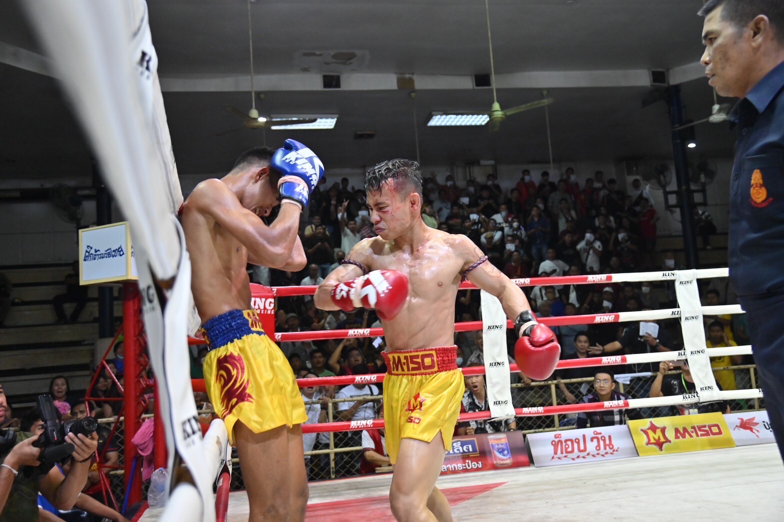 ซันเดย์ บูมเด็กเซียน โดนศอกแตก3 แผล ตกเป็นรองแต่มีลูกฮึดเดินลุยสู้อุตลุด จนถึงยก 4 เข้าไปปล้ำตีเข่า กระทุ้งตีๆๆ จนเพชรเจ้าพระยา (ศิษย์กำนันเหน่ง) สจ.เปีียกอุทัย ทนไม่ไหวทรุดลงไปกอง ซันเดย์ชนะน็อกพลิกล็อก ศึกจ้าวมวยไทย วันเสาร์ที่ 9 ธันวาคม 2566 เวทีมวยสยาม อ้อมน้อย
