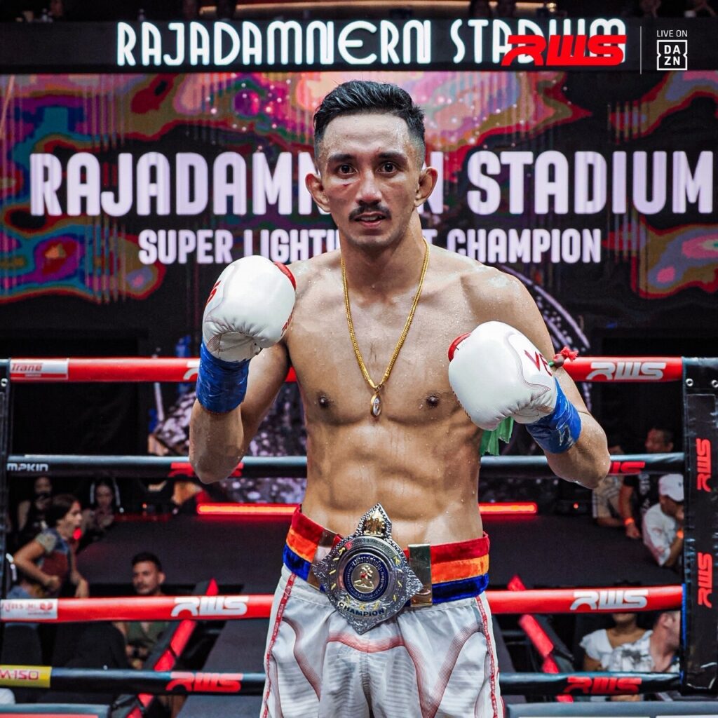 ศึกRWS เมื่อวันเสาร์ที่ 16 ธันวาคม 2566 เวทีราชดำเนิน คู่เอกเป็นการชิงแชมป์ว่างเวทีราชดำเนินรุ่นซุปเปอร์ไลท์เวท 140 ปอนด์ ระหว่าง ชูเจริญ ดาบรันสารคาม กับ เพชรธงชัย TBM ยิม ยก1-2 เพชรธงชัย เล่นฝีมือชกเกมรับคะแนนนำไปก่อน แต่ยก 3-4 ชูเจริญเดินลุยแหลกทำได้ จึงมาชิงดำกัน ออกอาวุธนิดหน่อยจนกรรมการตัดคะแนนทั้งคู่ ครบยกกรรมการให้เพชรธงชัยชนะคะแนน 47-46 ทั้งสามเสียง