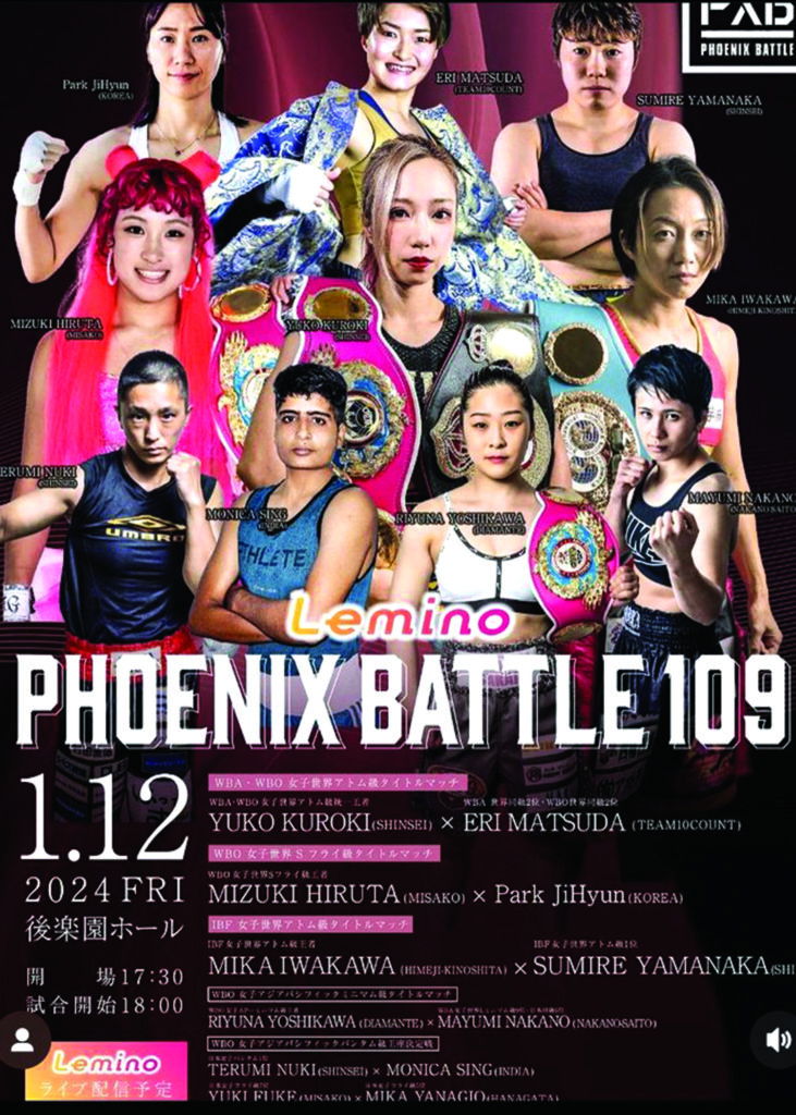 ศุกร์ที่ 12 มกราคม 2024 ญี่ปุ่นจัดมวยหญิงชิงแชมป์โลก 3 คู่ซ้อนในรายการเดียวกัน โดยมีคู่เอกเป็นการชกป้องกันแชมป์โลกมวยหญิงรุ่นอะตอมเวต (105 ปอนด์) 2 สถาบัน WBA/WBO เป็นศึกสายเลือดระหว่าง ยูโกะ คุโรกิ แชมป์โลกวัย 32 ปี สถิติชนะ 22 แพ้ 7 เสมอ 2 (ชนะน็อก 9) ป้องกันตำแหน่งกับ เอริ มัตสึดะ ผู้ท้าชิงสายเลือดเดียวกันวัย 29 ปี สถิติชนะ 6 แพ้ 1 เสมอ 1 (ชนะน็อก 1) และอีก 2 คู่เป็นการชกป้องกันตำแหน่งแชมป์โลกมวยหญิงรุ่นจูเนียร์แบนตั้มเวต WBO ระหว่างแชมป์โลก มิซูกิ ฮิราตะ กับผู้ท้าชิงชาวเกาหลีใต้ จิ ฮยุน ปาร์ค และศึกป้องกันแชมป์โลกมวยหญิงรุ่นจูเนียร์ฟลายเวต IBF มิกะ อิวากาวะ ตะบันกับผู้ท้าชิงชาวญี่ปุ่นด้วยกัน สึมิเระ ยามานากะ ทั้งหมดจะบรรเลงกำปั้นร่วมรายการเดียวกันที่เวทีโครักกุเอน ฮอลล์ ในกรุงโตเกียว