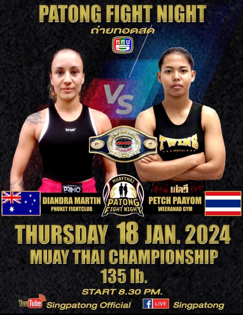 เดียนดรามาร์ติน ภูเก็ตไฟต์คลับ สาวสวยแข็งแกร่งดีกรี One Lumpinee จากออสเตรเลีย ดวล เพชรป่ายอม วีระนาทยิมส์ สาวห้าวจอมเตะจากพัทลุง