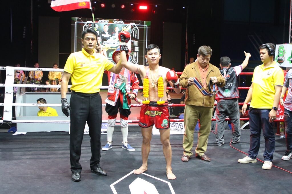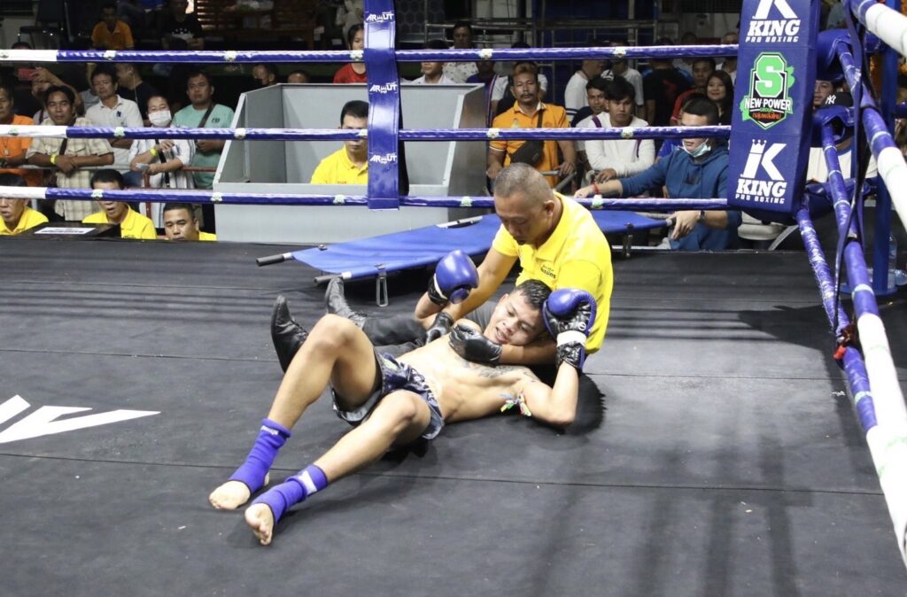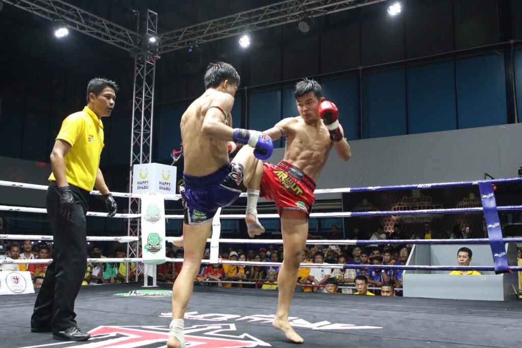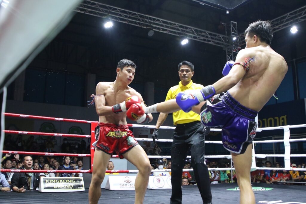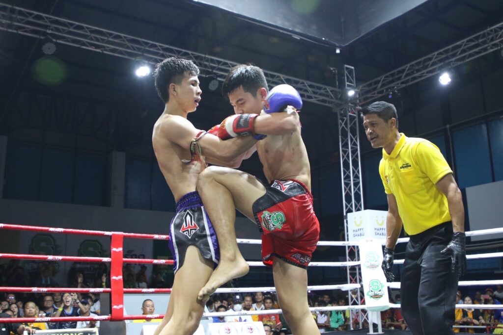คู่เอกช่วงทรู 24 ถ่ายทอดสดขุนศึกเล็ก บูมเด็กเซียน เล็กกว่าแต่อาศัยจังหวะฝีมือดักวางแข้งพลิก ฟันศอก พลิกเหลี่ยมบิดออกข้างจนแป๊ะยิ้ม ส.บุญมีฤทธิ์ ทำอะไรไม่ถนัด ล้มหลายครั้ง ขุนศึกเล็กชนะคะแนน 49-48 ทั้งสามเสียง ป้องกันแชมป์ประเทศไทยไว้ได้