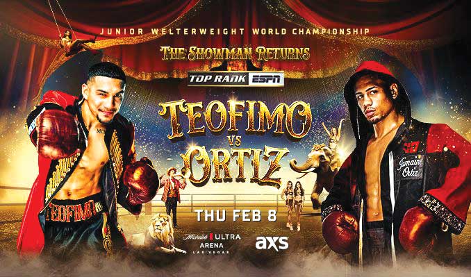 เทโอฟิโม โลเปซ แชมป์โลกจูเนียร์เวลเตอร์เวต WBO จะชกป้องกันตำแหน่งครั้งแรกของเขากับ จาเมน ออร์ติซ นักชกชาวอเมริกันด้วยกัน ในวันพฤหัสบดีที่ 8 กุมภาพันธ์นี้ที่ มิเชล็อบ อัลตรา อารีนา, ลาสเวกัส, เนวาดา, สหรัฐอเมริกา