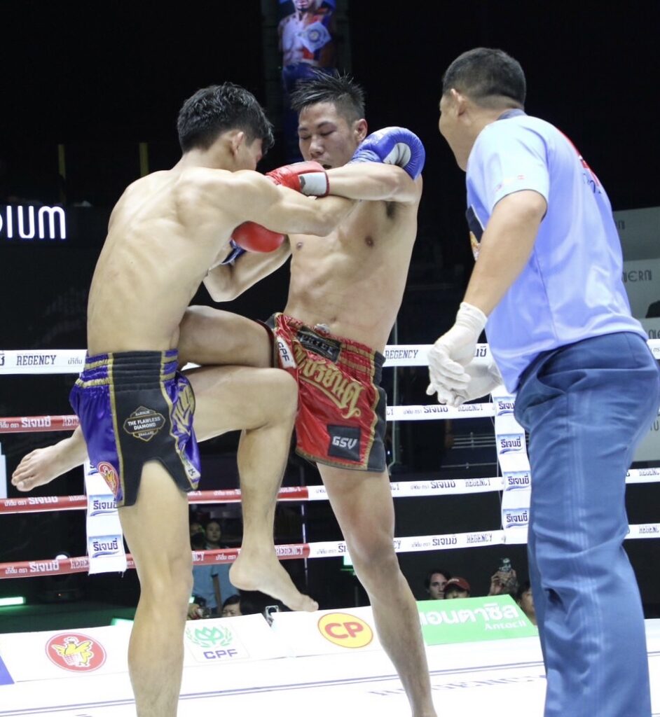สมรักษ์น้อย มวยเด็ด789 ได้ใหญ่ยาว เดินลุยปล้ำตีเข่าใส่ เพชรเมืองศรี ทีเด็ด99 ที่เล่นฝีมือออกแข้งดันแทงแต่ปลายๆสมรักษ์น้อยปล้ำตีเน้นๆเอาชนะคะแนนไปได้