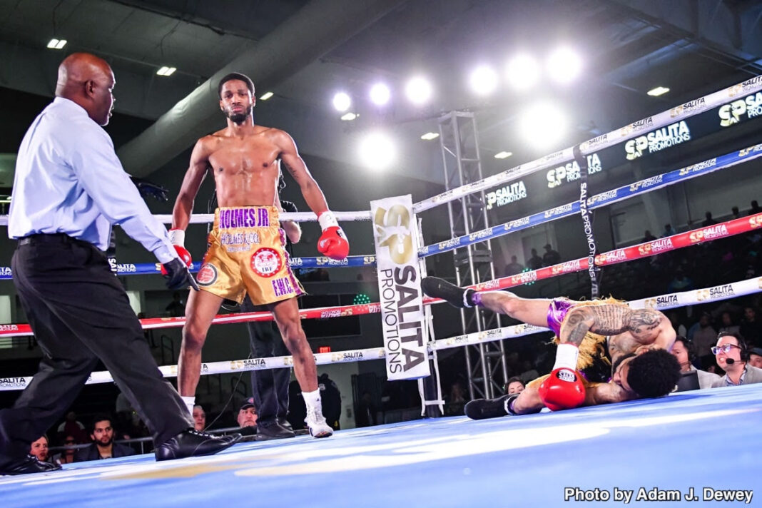 โฮล์มส์ อายุ 29 ปี เพิ่มสถิติการชกเป็นชนะ 15 ไฟต์รวด และชนะน็อกเป็นครั้งที่ 10 ส่วนแฮร์ริงตัน อายุ 31 ปี แพ้เป็นครั้งที่ 2 มีชนะ10 ไม่มีเสมอ และชนะน็อก 9 ไฟต์