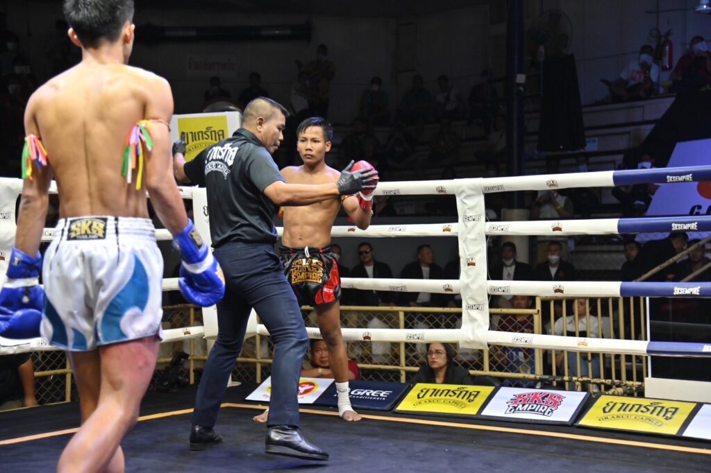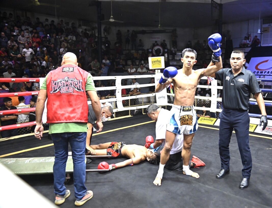 เพชรน้ำงาม วีเค.เขาใหญ่ ร้อนแรงสุดๆเก็บชัยไฟท์ที่ 5 ติดต่อกันโดยฟันศอกเอาชนะน็อกเมฆ พรัญชัย ไปอย่างเด็ดขาดยก 3 หลังจากต่อยได้นับในยกที่ 2 คู่เอกศึกมวยไทยเกียรติเพชร SKS