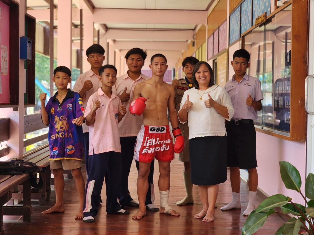 คณะครูอาจารย์และเพื่อนๆนักเรียนโรงเรียนสวนผึ้งวิทยาร่วมแสดงความยินดีกับมนต์พระราม ศิษย์เพชรฉลูกัณฑ์ ที่คว้าแชมป์เวทีมวยช่อง7 โดยเพจของโรงเรียนสวนผึ้งวิทยาได้เผยแพร่แสดงความยินดีด้วย