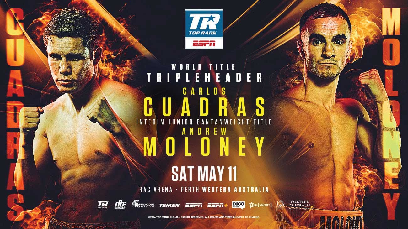 คัวดราส อายุ 35 ปี มีสถิติการชกชนะ42 แพ้ 5 เสมอ 1 ชนะน็อก 28 ไฟต์ ส่วน แอนดรูว์ โมโลนี่ย์ อายุ 33 ปี มีสถิติการชกชนะ 26 แพ้ 3 ไม่มีเสมอ โดยชนะน็อก 16 ไฟต์