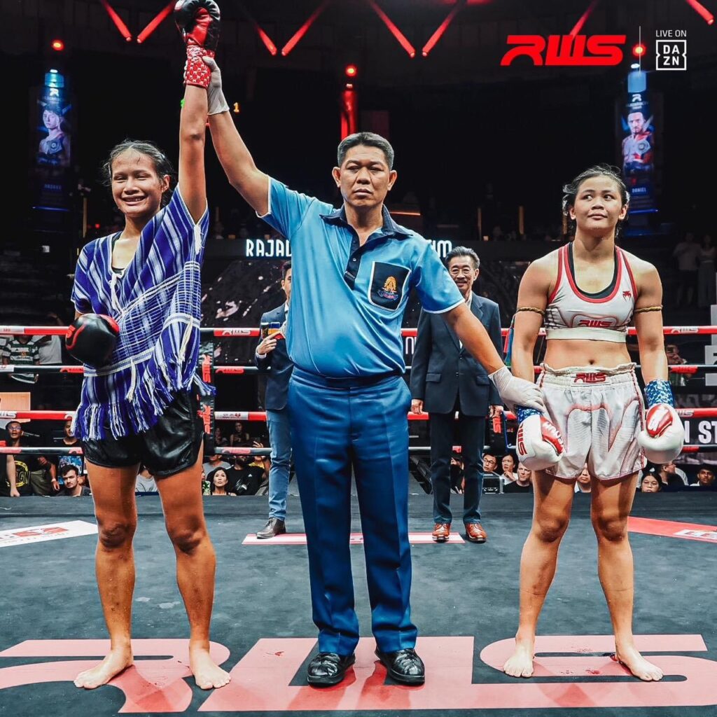 โสมรัศมี มานพมวยไทยยิม เตะซ้ายแทงเข่าปล้ำตีสู้กับ กำไลเพชรเพชรยินดีอคาดามี่ อย่างสนุกเบียดกันตลอด อาวุธมวยโสมรัศมีเข้าตากรรมการมากกว่าให้เป็นฝ่ายชนะคะแนนไป ป้องกันแชมป์ 118 ป.เวทีราชดำเนินเอาไว้ได้สำเร็จ ศึก RWS เสาร์ที่ 1 มิ.ย.2567 เวทีราชดำเนิน
