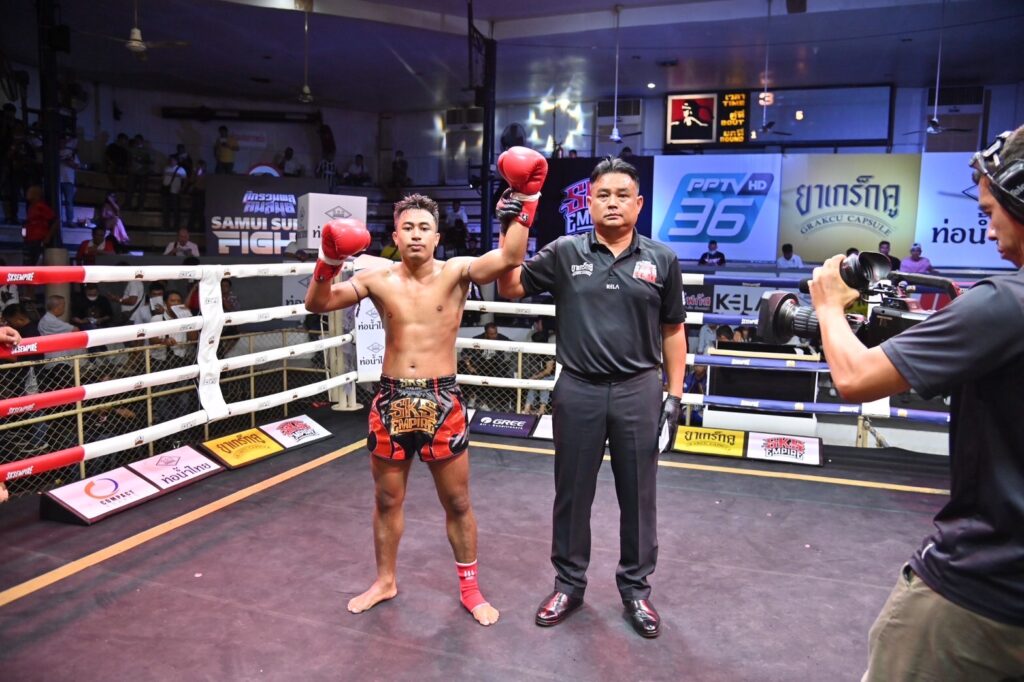 ศักดิ์เล็ก (เกียรติเพชรเดชะ) ลูกเจ้าพ่อโรงต้ม ประเดิมสีเสื้อใหม่เดินหน้าออกแข้งออกอาวุธเน้นๆแต่ทางด้าน เก้าล้าน สจ.แดนระยอง ก็ตอบโต้หนักๆจนถึงยกสุดท้ายชิงดำ ต่างฝ่ายต่างเต้น ออกอาวุธกันเล็กน้อยก่อนที่ศักดิ์เล็กจะเป็นฝ่ายเฉือนชนะคะแนน ศึกพีพีทีวี เกียรติเพชร SKS SUPER FIGHT วันเสาร์ที่ 15 มิถุนายน 2567 เวทีมวยสยาม อ้อมน้อย