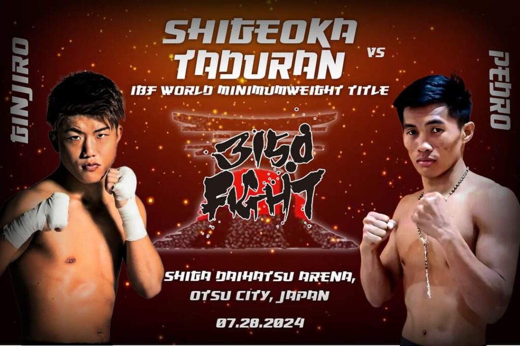 กินจิโร่ ชิเกโอกะ (11-0-0, 9) แชมป์โลกรุ่นมินิฟลายเวต สหพันธ์มวยนานาชาติ (IBF) จะชกป้องกันตำแหน่งของเขาเป็นครั้งที่ 2 กับนักชกฟิลิปปินส์ที่แฟนมวยเมืองไทยรู้จักกันดีคือ เปโดร ทาดูรัน (16-4-1, 12) ในวันอาทิตย์ที่ 28 กรกฎาคม 2024 นี้ที่ ชิกะ ไดฮัตสุ, เมืองออตสึ, ประเทศญี่ปุ่น จัดโดย คาเมดะ โปรโมชั่น