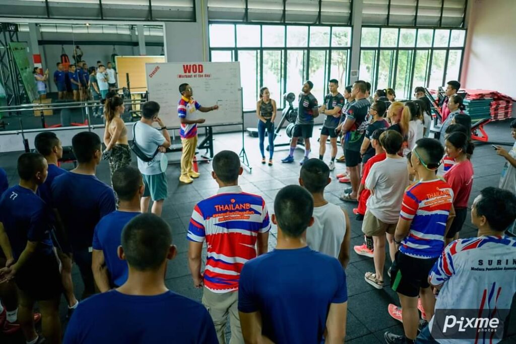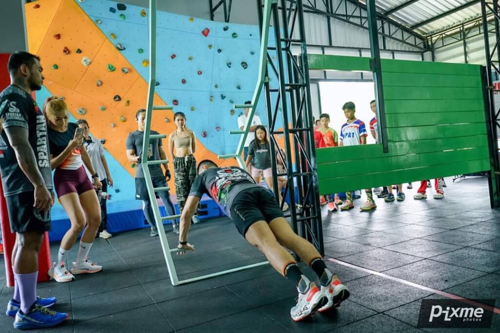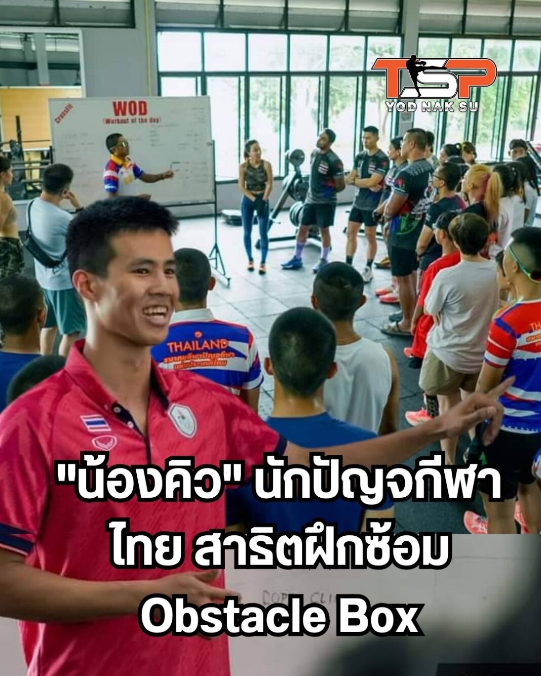โดย “น้องคิว” จ่าโท ภูริช โยเฮือง ได้ให้คำแนะนำและการสาธิตการฝึกซ้อม Obstacle Box ซึ่งเป็นอุปกรณ์สิ่งกีดขวางในการแข่งขันกีฬาปัญจกีฬา อาทิ กำแพงสูง 6 ฟุต (Over 6ft wall) กำแพงลอดใต้ (under wall) กำแพงผ่านช่องกลาง (Through wall) กำแพงขวาง (traverse wall) ราวลิง (monkey bar) ห่วง (rings) ห่วงหมุน (Twister Ring) และเชือกปีน (Rope Climb) เป็นต้น