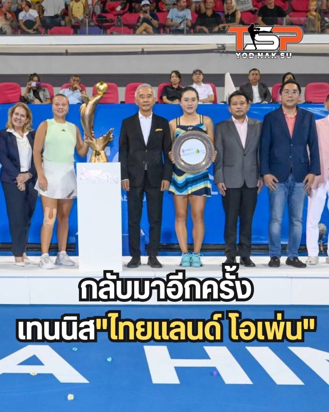 ฯพณฯ สุวัจน์ ลิปตพัลลภ อดีตรองนายกรัฐมนตรี และนายกกิตติมศักดิ์สมาคมกีฬาลอนเทนนิสแห่งประเทศไทย ในพระบรมราชูปถัมภ์ และประธานจัดการแข่งขัน Thailand Open 2024 เปิดเผยว่า หลังจากประสบความสำเร็จอย่างมากในการจัดการแข่งขันเทนนิสหญิง รายการใหญ่ ซึ่งจัดมาแล้วหลายครั้ง รวมทั้งครั้งล่าสุด ดับเบิลยูทีเอ 250 รายการ ไทยแลนด์ โอเพ่น 2024 พรีเซนเต็ด บาย อีเอ ชิงเงินรางวัลรวมสูงถึง 267,082 ดอลลาร์สหรัฐ หรือเกือบ 10 ล้านบาท ที่อารีน่า หัวหิน จ.ประจวบคีรีขันธ์ ระหว่างวันที่ 29 ม.ค. – 4 ก.พ. ที่ผ่านมา ล่าสุด กลุ่มบริษัท พราว และ อารีน่า หัวหิน ในฐานะผู้จัดฯ ได้แจ้งว่าจะจัด ไทยแลนด์ โอเพ่น ในปีนี้อีกครั้ง เพื่อเอาใจแฟนกีฬาเทนนิส