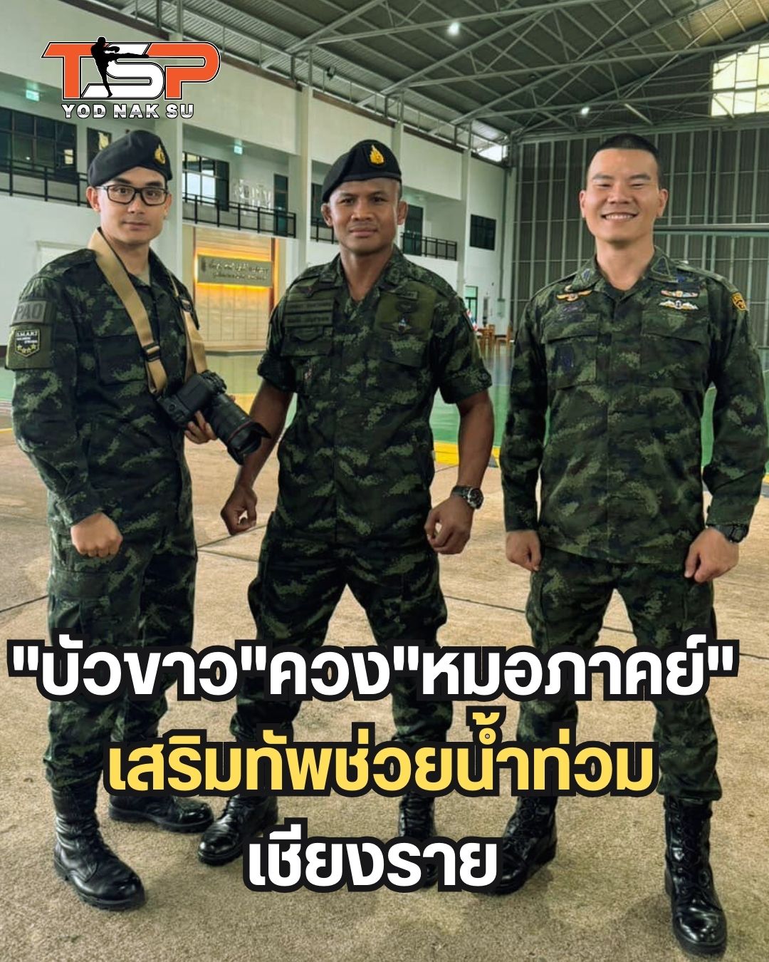 ล่าสุด “บัวขาว บัญชาเมฆ” ร.ท.สมบัติ บัญชาเมฆ ยอดนักมวยขวัญใจชาวไทย สังกัดศูนย์การกำลังสำรอง หน่วยบัญชาการรักษาดินแดน พร้อมด้วย “หมอภาคย์” พ.อ.นพ.ภาคย์ โลหารชุน นายแพทย์ใหญ่ หน่วยบัญชาการสงครามพิเศษ จังหวัดลพบุรี