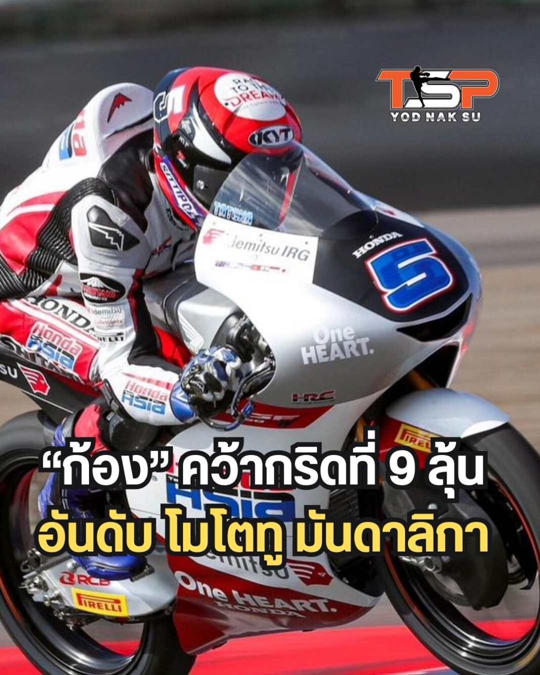ส่วน “ก๊องส์” ธัชกร บัวศรี นักบิดดาวรุ่งชาวไทยหมายเลข 5 จาก ฮอนด้า ทีม เอเชีย ยังคงเจองานท้าทายความสามารถในรุ่น โมโตทรี เวิลด์ แชมเปี้ยนชิพ โดยคว้ากริดที่ 25 มาครอง ด้วยเวลาต่อรอบ 1 นาที 39.488 วินาที เริ่มเกมจากแถว 9