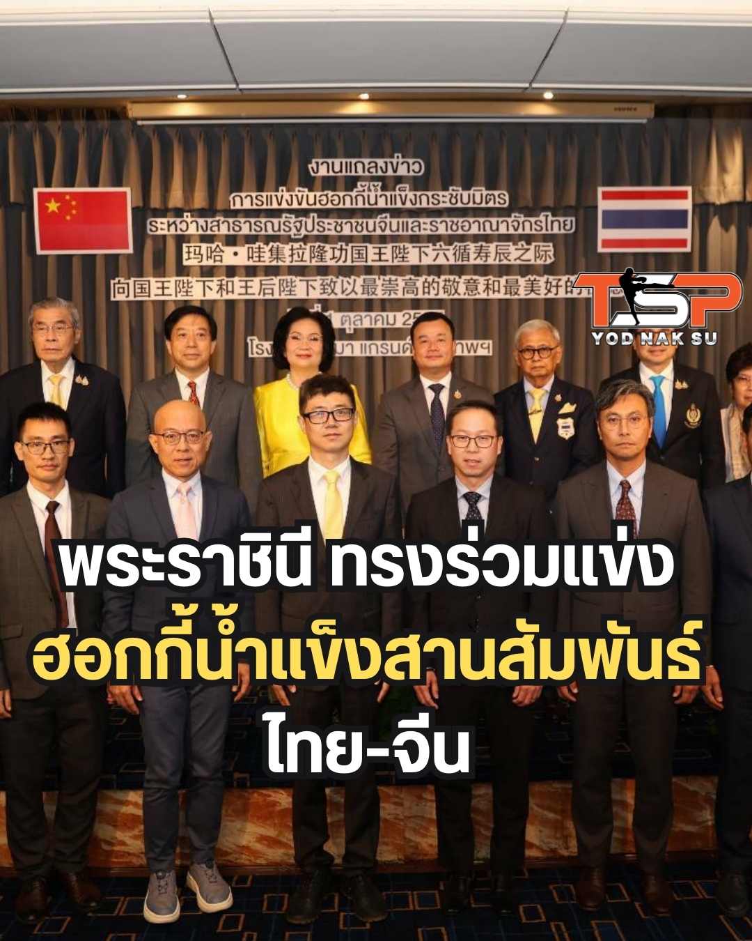 สำหรับ การแข่งขันฮอกกี้น้ำแข็ง กระชับความสัมพันธ์ ไทย-จีน เป็นความร่วมมือกันระหว่างสาธารณรัฐประชาชนจีน กับ ราชอาณาจักรไทย ซึ่ง สมเด็จพระนางเจ้าสุทิดา พัชรสุธาพิมลลักษณ พระบรมราชินี ที่มีพระปรีชาสามารถ และ สนพระทัยในกีฬาฮอกกี้น้ำแข็ง เคยลงแข่งขันในพิธีเปิดสนามกีฬาไทยแลนด์อินเตอร์เนชั่นแนล ไอซ์ฮอกกี้ อารีน่า จ.เชียงใหม่ ซึ่งในครั้งนี้ สมเด็จพระนางเจ้าสุทิดา พัชรสุธาพิมลลักษณ พระบรมราชินี ทรงร่วมแข่งขันรายการนี้ เป็นตัวแทนทีมชาติไทย พบกับ ทีมจีน ในวันที่ 6 ต.ค.2567 ที่ สนามไทยแลนด์อินเตอร์เนชั่นแนล ไอซ์ฮอกกี้ อารีน่า พระราม 9