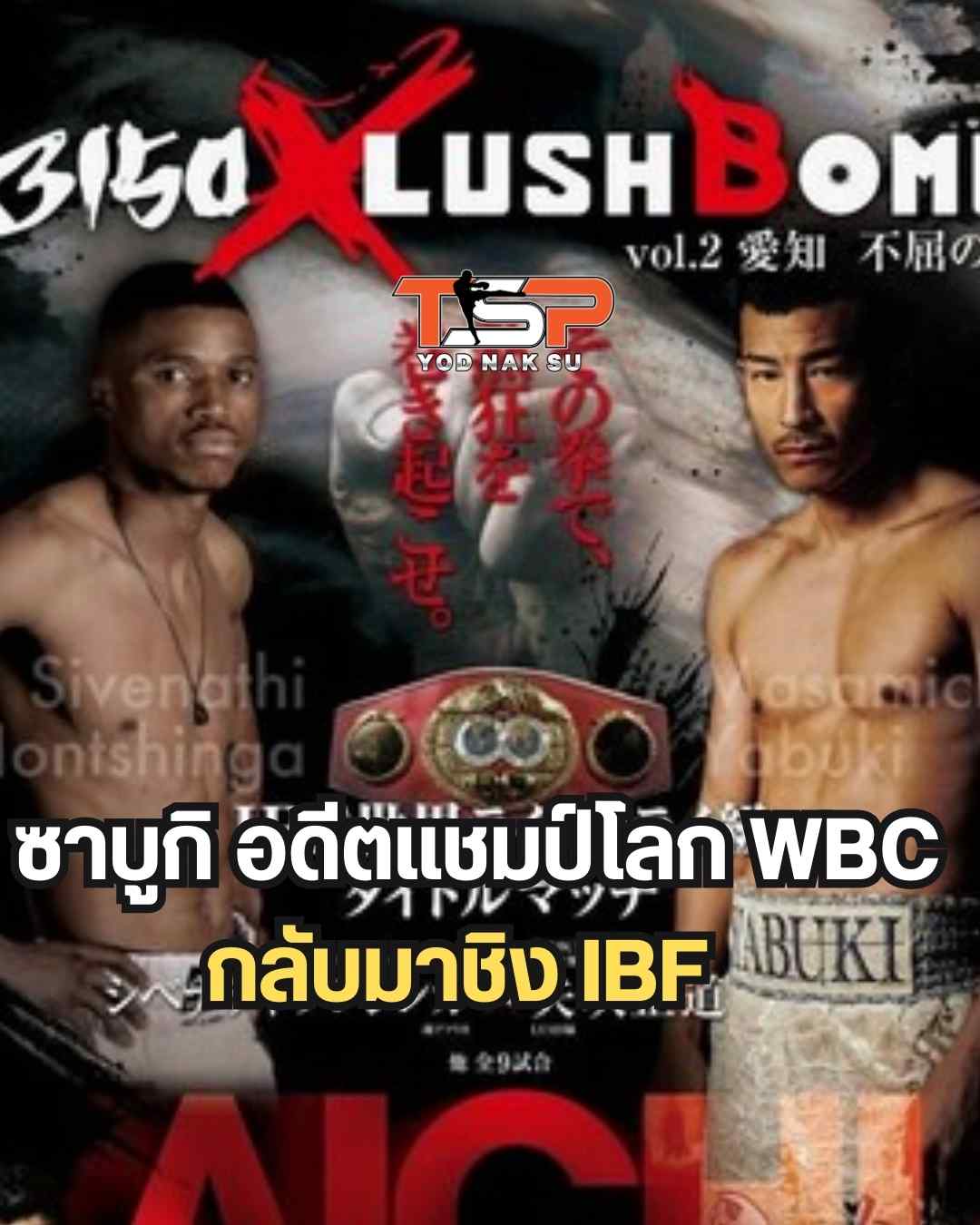 มาซามิจิ ซาบูกิ (16-4-0, 15 Kos) อดีตแชมป์โลกไลต์ฟลายเวต WBC วัย 32 ปี ได้กลับมาชิงแชมป์โลกจูเนียร์ฟลายเวต IBF กับ ไซเวนาติ นอนชินกา (13-1-0, 10 Kos) แชมป์โลกชาวแอฟริกาใต้ วัย 25 ปี ในวันเสาร์ที่ 12 ตุลาคม 2024 ที่จะถึงนี้ ที่ เออิชิ สกาย เอ็กซโป, เมืองเออิชิ, ประเทศญี่ปุ่น จัดโดย คาเมดะ โปรโมชั่นส์